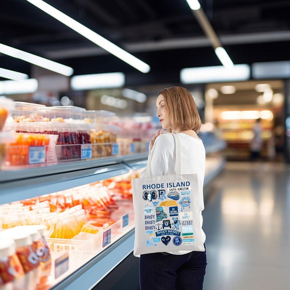 حقيبة حمل للسفر من VAMSII Rhode Island هدية لمحبي رود آيلاند حقيبة تسوق بطابع مدينة RI للمسافرين (رود آيلاند)