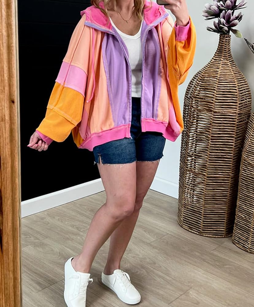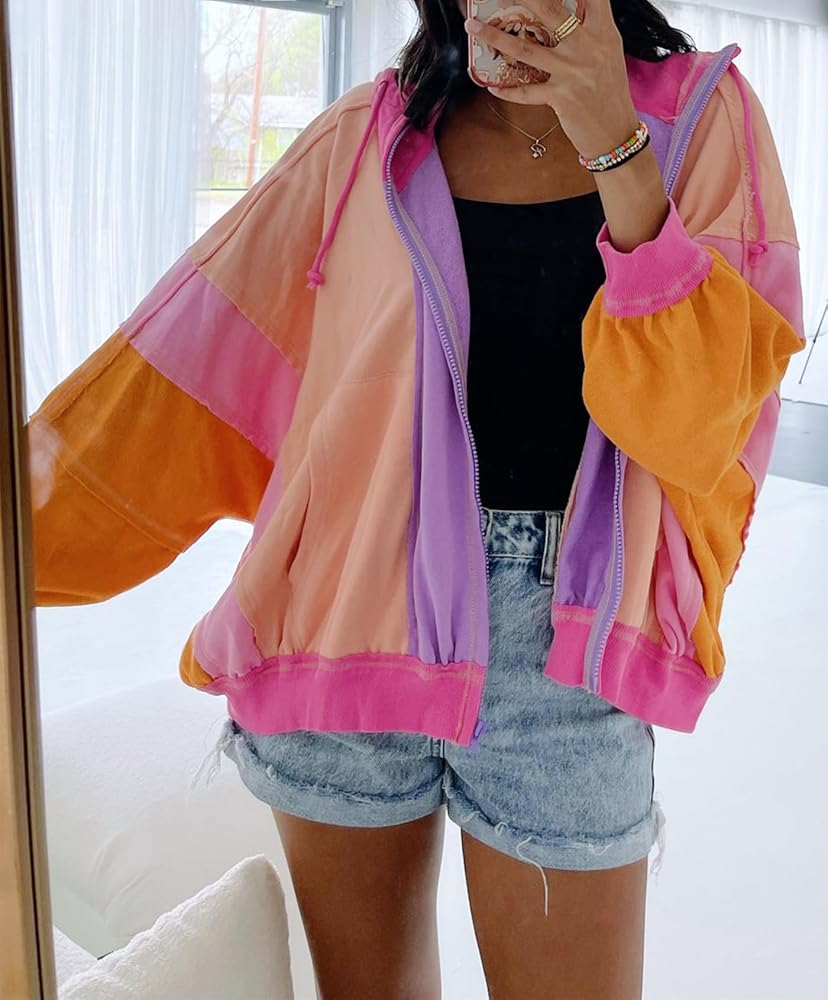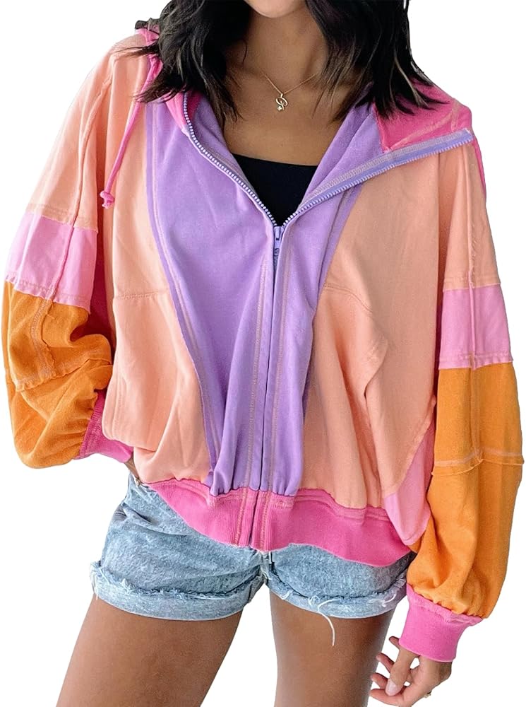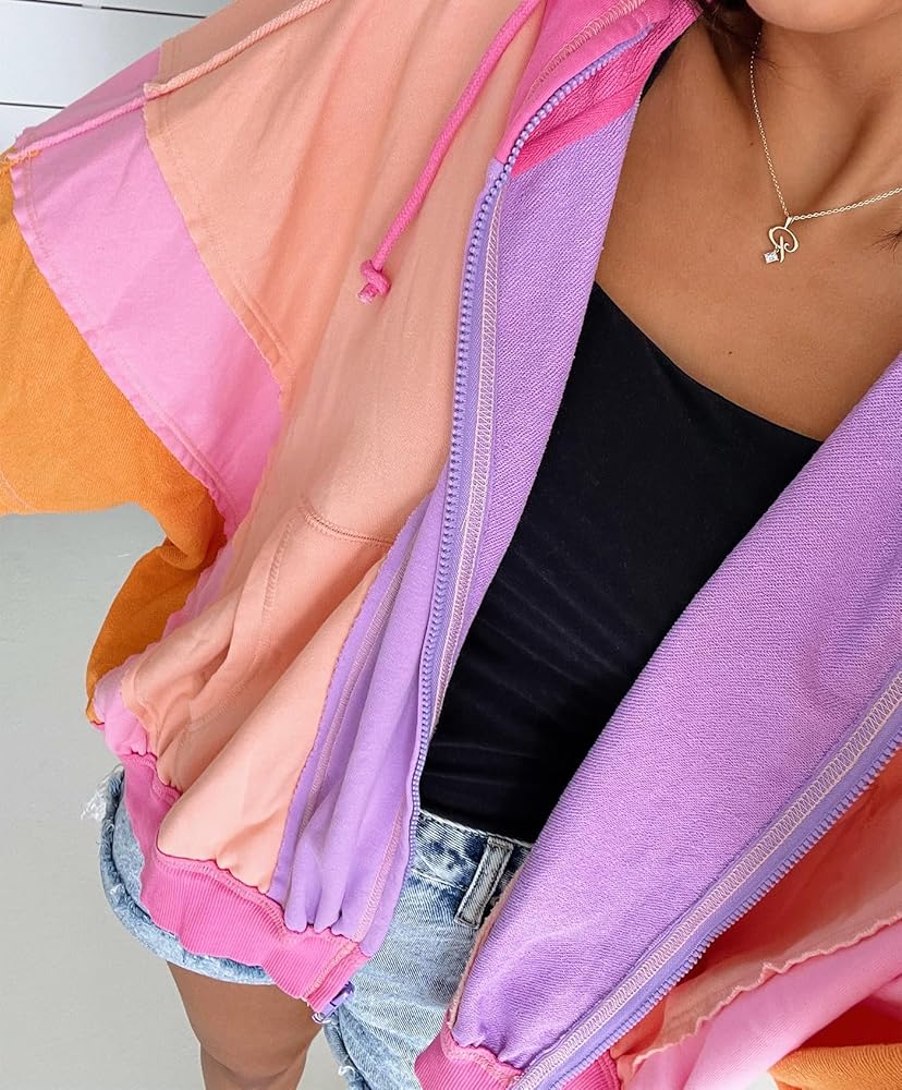 • السمات: سترة بغطاء للرأس بسحاب للنساء، كتلة الألوان، متعددة الألوان، كم طويل، غطاء رأس برباط، جيبان جانبيان، كتف منسدل، سويت شيرت كبير الحجم للنساء، سترة بقلنسوة للخريف والشتاء، سويت شيرت بسحاب y2k