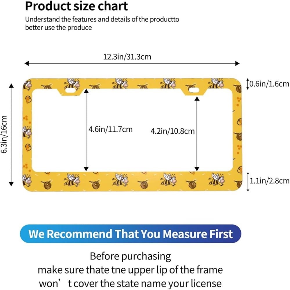 ► الحجم المناسب: يبلغ حجم إطار درع لوحة الترخيص حوالي 12.2 × 6.3 بوصة. تناسب جميع لوحات الترخيص الأمريكية القياسية.