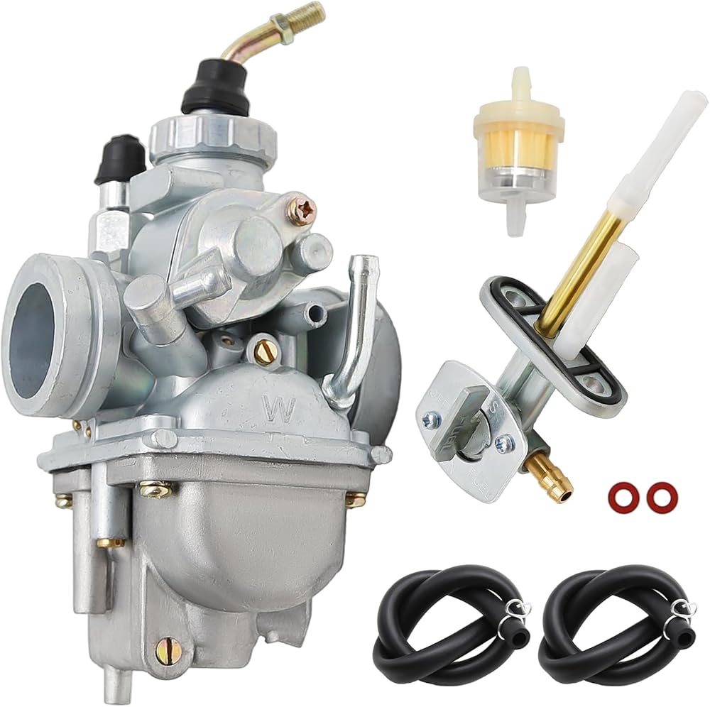 [Package Include] 1 x Carburetor, 1 X Fuel Filter, 1 X Shut-off Valve, 1 X Gas Fuel Tank Petcock, 2 X Fuel Lines, 4 X Clamps, 1 X Carbon Dirt Jet Cleaner Tool Kit