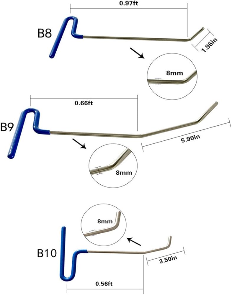 Professional Paintless Dent Repair Rods- Best design of this Stainless Steel Whale Tails Paintless Dent Repair Rods. Easy to use, making you feel more comfortable while Removing Dent. Particularly suitablefor professional technicians to repair car dents and dings.