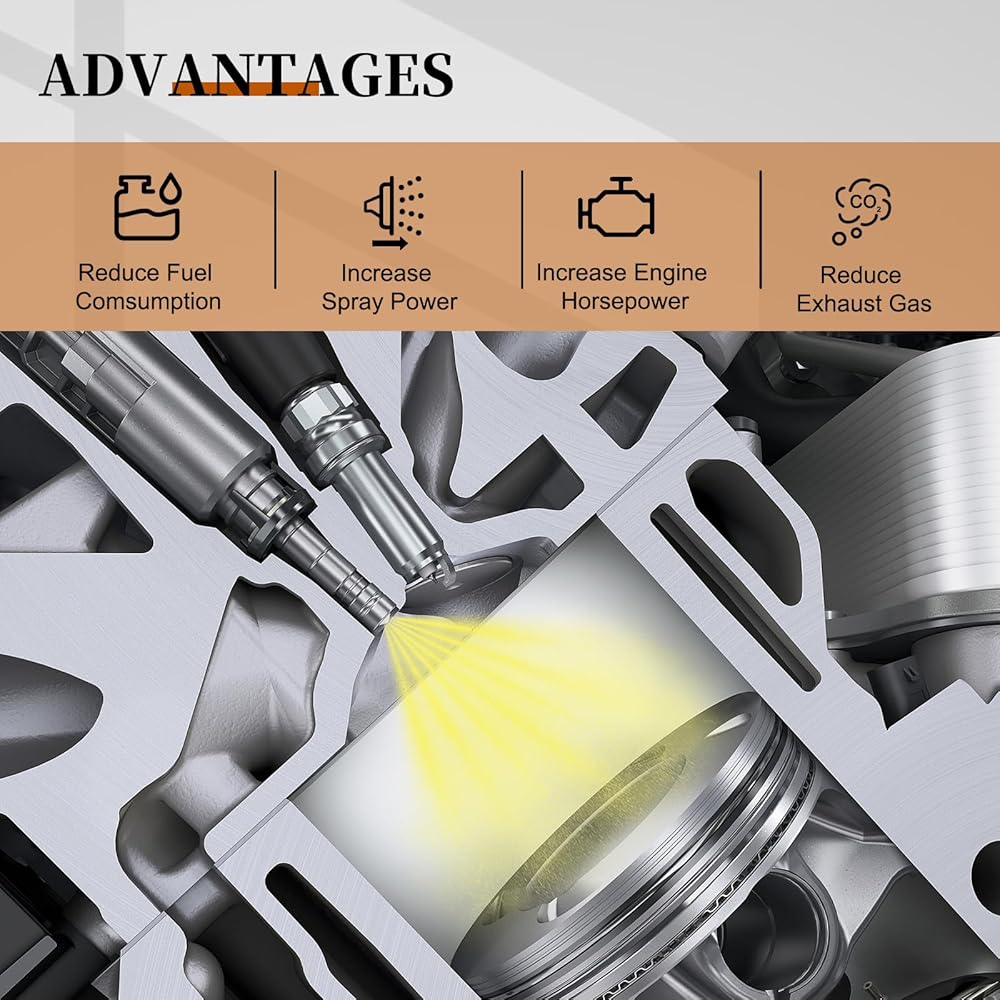 تحسين الاقتصاد في وقود المحرك: يعمل حاقن الوقود تحت ضغط عالٍ، مما يساعد على تفتيت الوقود بشكل أفضل وخلطه مع الهواء لتشكيل خليط متجانس، مما يحسن كفاءة الاحتراق ويعزز أداء المحرك والاقتصاد في استهلاك الوقود.