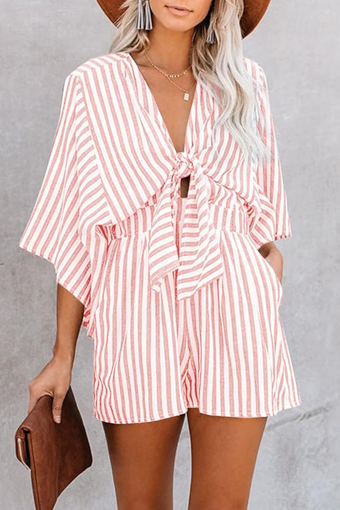 • 【تصميم أنيق】تتميز بذلة البذلة النسائية بعقدة ربط وتجويف عند الخصر، مما يجعلها أكثر جاذبية وعصرية. تصميم نصف كم يجعله أكثر أناقة. يمكن لجيبين جانبيين تخزين بعض العناصر الصغيرة مثل الهواتف وسماعات الأذن والمفاتيح. هذا السروال القصير النسائي مثالي للمرأة التي ترغب في الحفاظ على الحرية والراحة طوال الوقت. خيارك الأفضل!