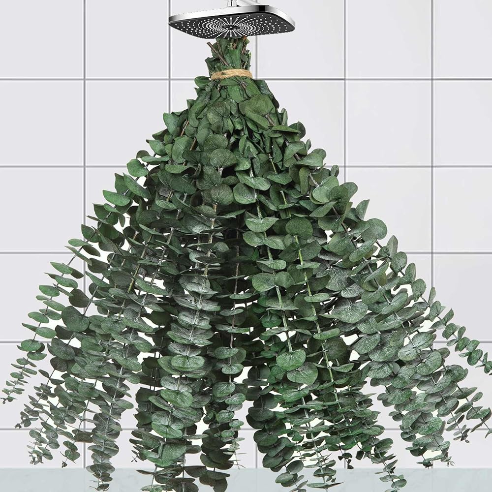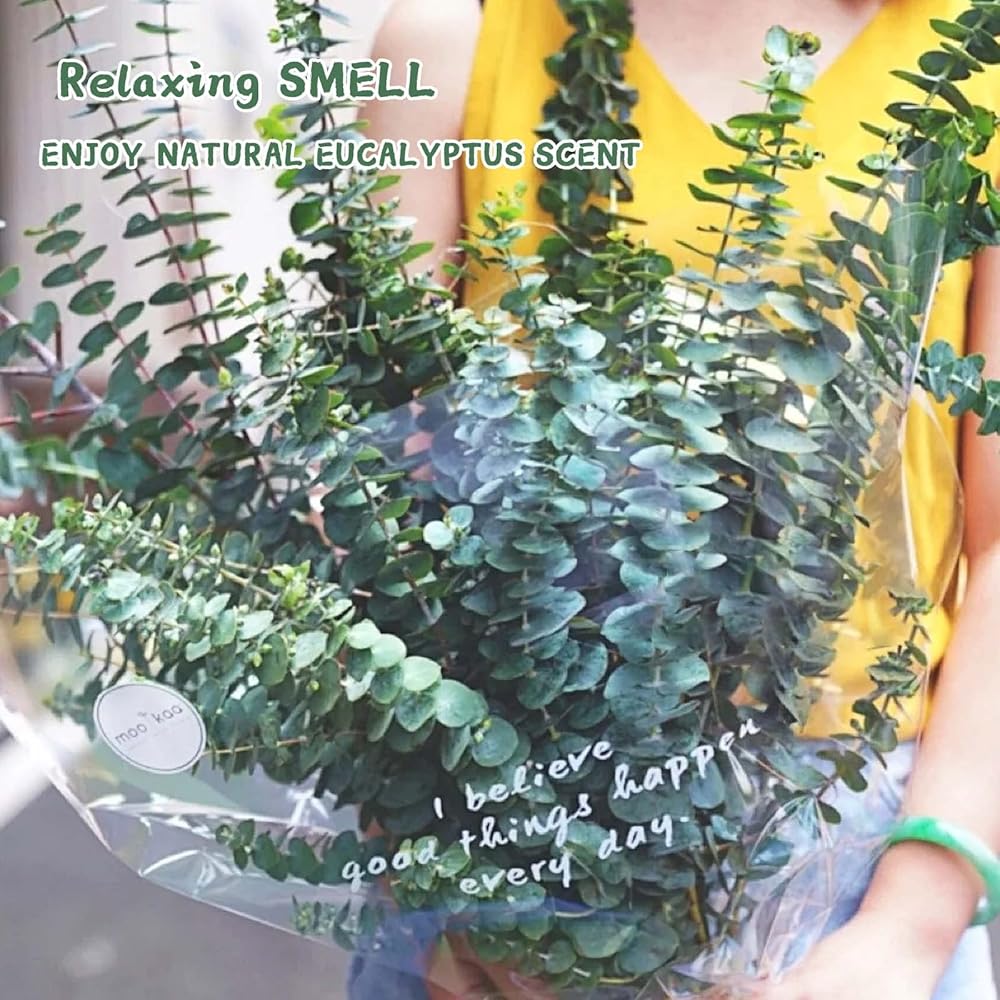 • رائحة الأوكالبتوس العلاجية الطبيعية: يتميز الأوكالبتوس برائحة طبيعية فريدة من نوعها. دش الأوكالبتوس المعلق في حمامك بالخيوط يمكن أن يخفف من القلق ويجدد حواسك. أوراق الأوكالبتوس المحفوظة لها رائحة أخف من رائحة الكينا الطازجة. للحصول على أفضل نتيجة، نوصي بالتغيير شهريًا. يعتبر الأوكالبتوس المستخدم خيارًا جيدًا لديكور الدش