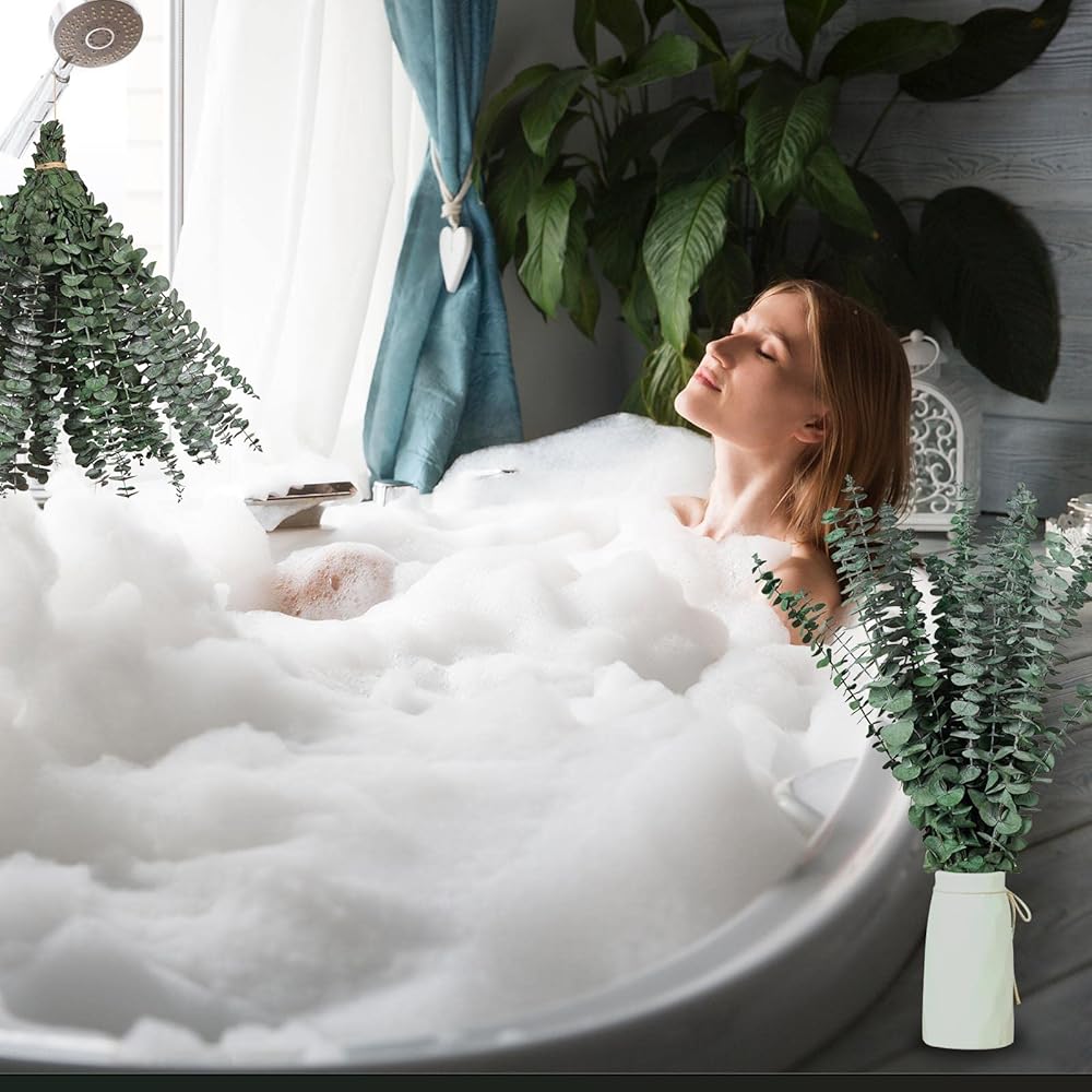 30 قطعة من سيقان الأوكالبتوس المجففة للاستحمام، 17 بوصة من أوراق الأوكالبتوس الطازجة الطبيعية فروع معلقة، حزمة نبات الأوكالبتوس الحية 9oz للحمام المنزلي والحمامات وديكور مزهرية حائط الزفاف، أساسيات الحمام