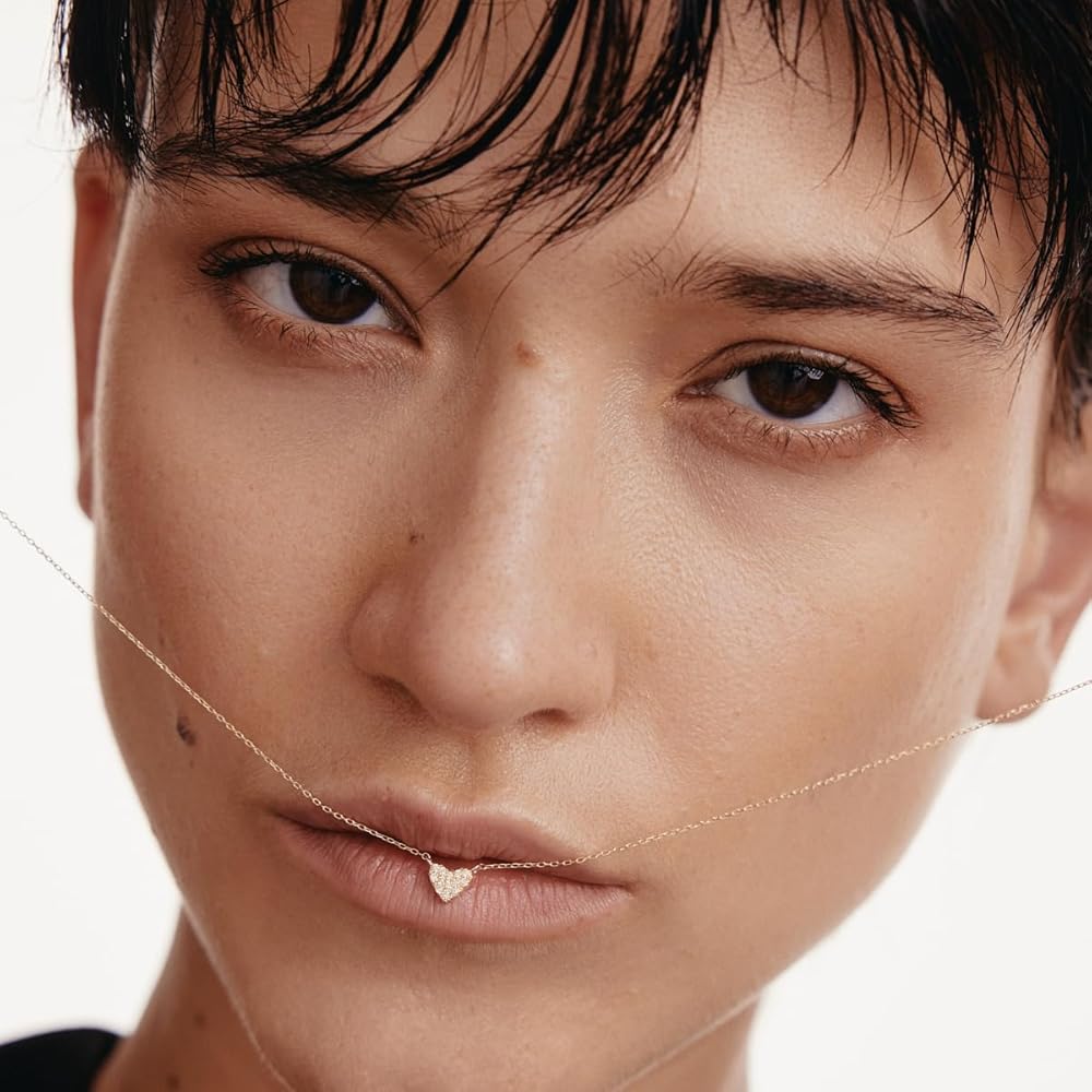 قلادة جيلين ألماس من الذهب الصلب عيار 14 قيراط للنساء | قلادة من الذهب الحقيقي عيار 14 قيراط مرصعة بالألماس على شكل قلب | قلادة الحب الماسية | مجوهرات ذهبية عيار 14 قيراط للنساء | هدية للذكرى السنوية، 18 بوصة