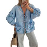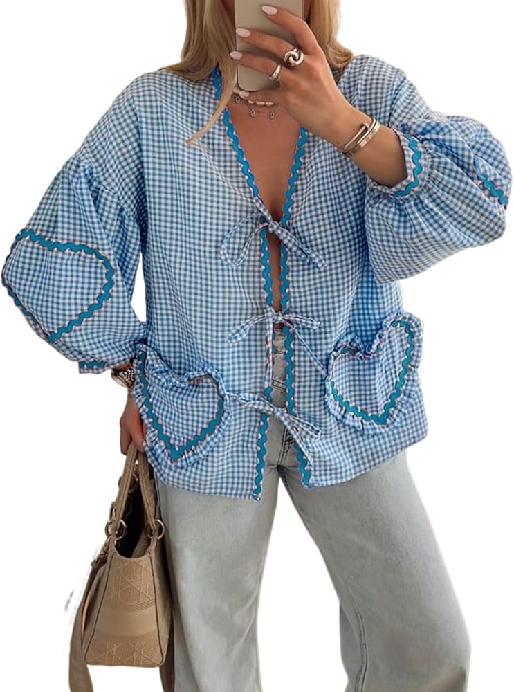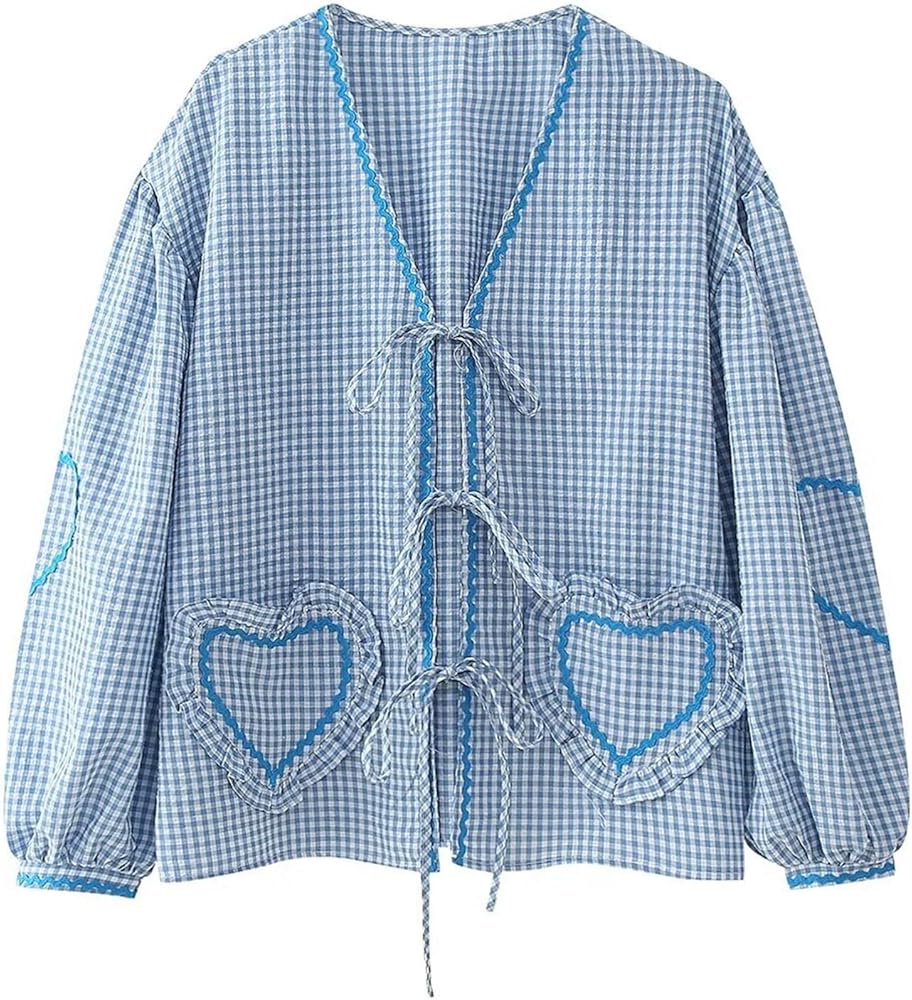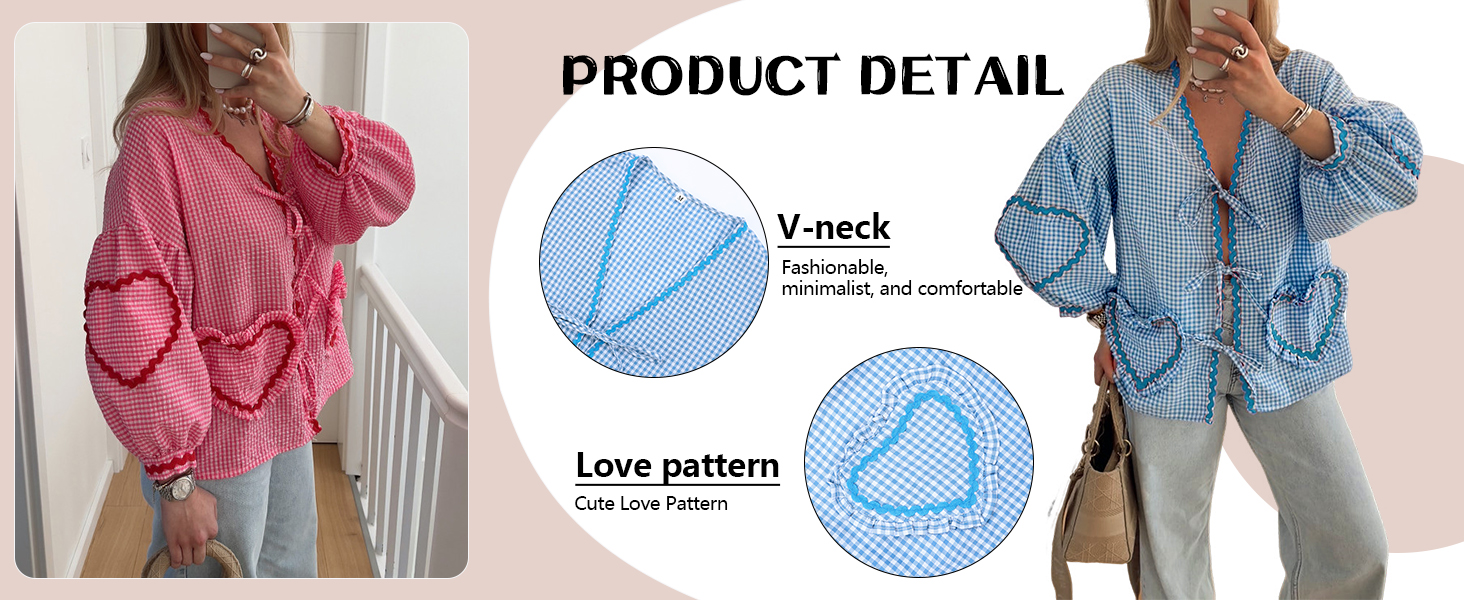 • جيوب القلب: قمم جمالية Y2k. تعمل الجيوب الفريدة على شكل قلب ونمط القلب على تعزيز المظهر البصري للجزء العلوي، مما يوفر تخزينًا عمليًا للأشياء الصغيرة مثل المفاتيح.