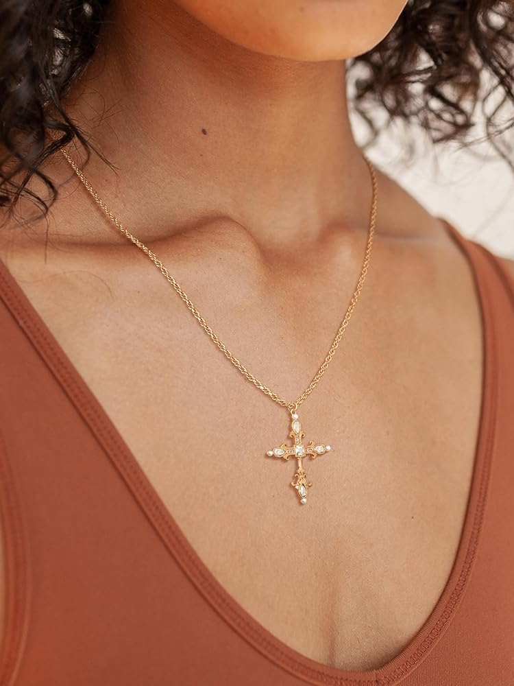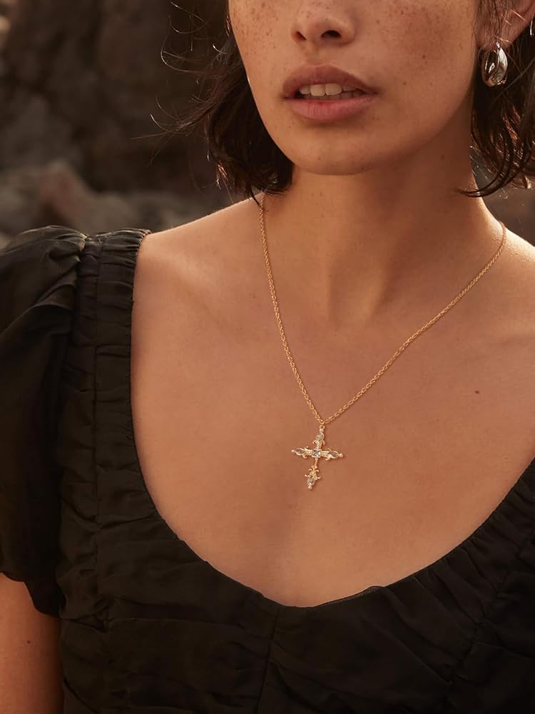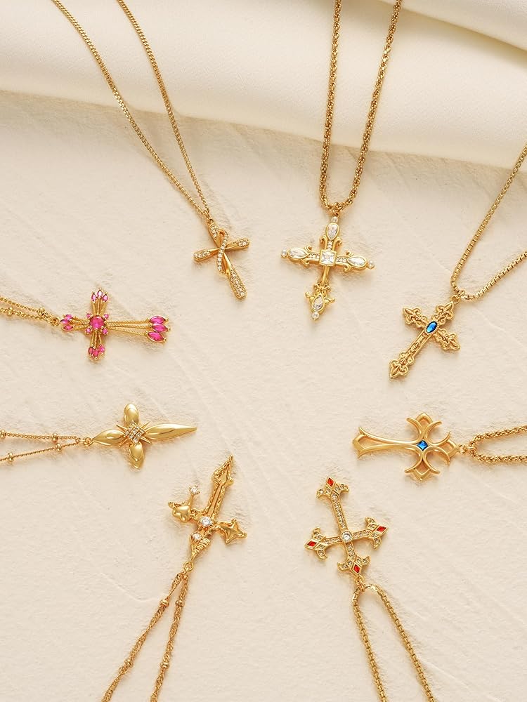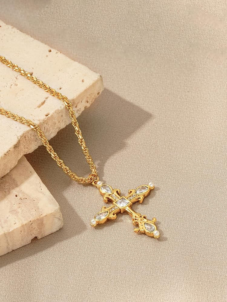 قلادة متقاطعة مطلية بالذهب: مصنوعة بدقة، القلادة الخاصة بنا مزينة بالزركونيا المكعبة الزرقاء ومطلية بطلاء ذهبي عيار 14 قيراط على النحاس عالي الجودة. وهذا يضمن لمسة نهائية طويلة الأمد وخالية من النيكل والرصاص ولا تسبب الحساسية، مما يوفر متانة وأناقة استثنائيين.