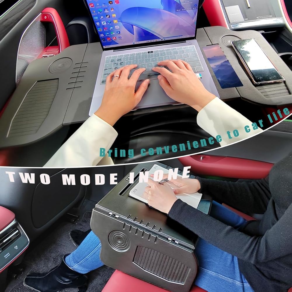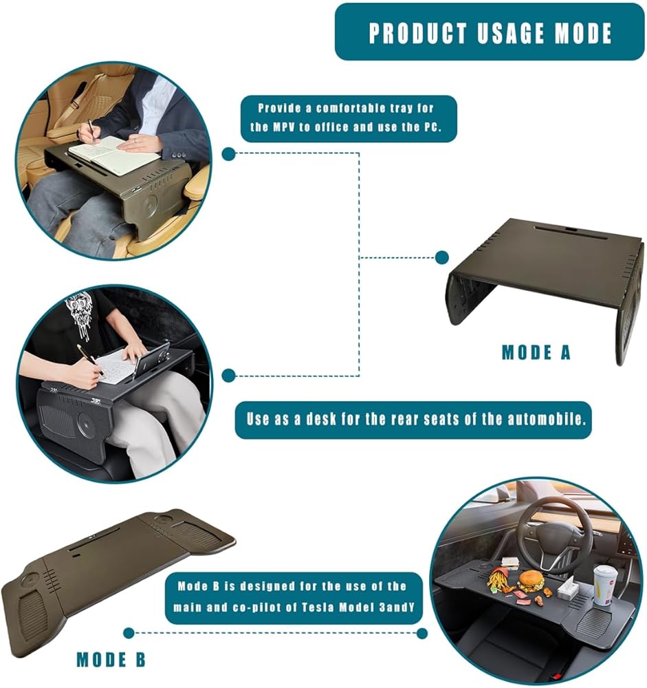 2. الوضع A عبارة عن منصة عمل كبيرة مصممة خصيصًا لأوضاع القيادة الأمامية في Tesla MODEL Y وMODEL 3. يبلغ حجم سطح المكتب 30.5 بوصة طولًا و13.2 بوصة عرضًا. يوجد حاملات أكواب على الجانبين الأيسر والأيمن، وفتحة للهواتف المحمولة ووسادة في منتصف الطاولة. يمكن لكل من الوضعين الرئيسي ومساعد الطيار استخدام هذا المنتج. باستثناء Tesla، يمكن استخدام درجنا في السيارات التي يكون فيها الارتفاع على الجانبين الأيسر والأيمن من موضع القيادة هو نفسه. يرجى التأكد من استخدامه عندما يمكن وضع الدرج بسلاسة.