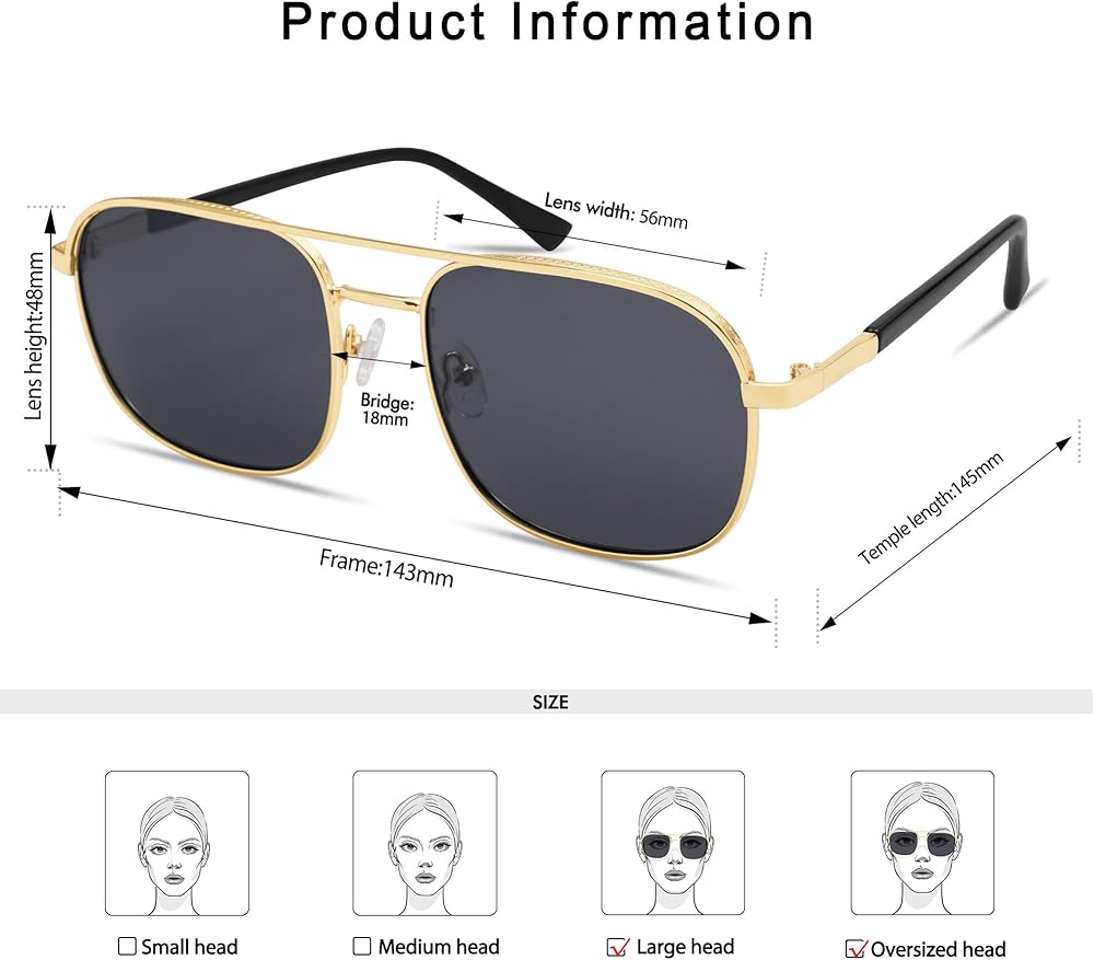 تصميم افياتور عصري: إطارات افياتور الكلاسيكية المربعة ذات القضبان المزدوجة يمكن أن تتطابق مع أشكال الوجه المختلفة. نظارات ريترو أفياتور الشمسية مناسبة لكل من الرجال والنساء في أي مناسبة وظروف جوية.