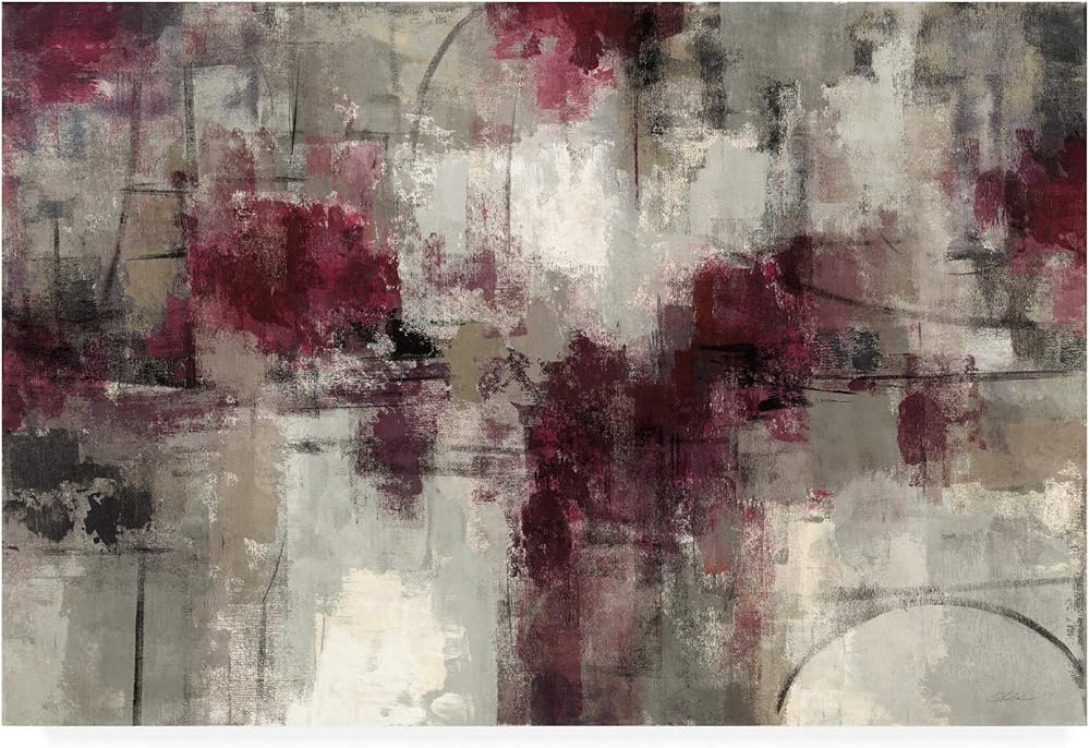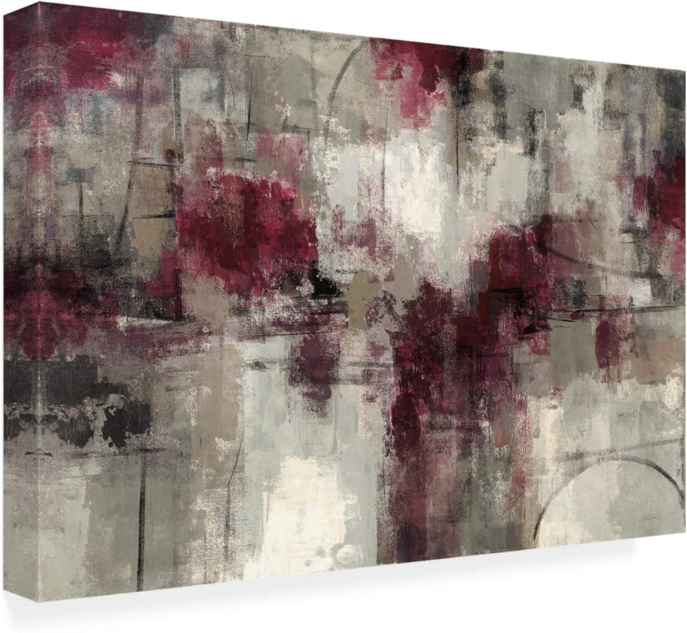 This ready to hang, gallery-wrapped art piece features a red and gray abstract composition filling the frame. Wild Apple Portfolio Giclee (jee-clay) is an advanced printmaking process for creating high quality fine art reproductions. The attainable excellence that Giclee printmaking affords makes the reproduction virtually indistinguishable from the original piece. The result is wide acceptance of Giclee by galleries, museums, and private collectors. Gallery wrap is a method of stretching an artist's canvas so that the canvas wraps around the sides and is secured a hidden, wooden frame. This method of stretching and preparing a canvas allows for a frameless presentation of the finished painting.