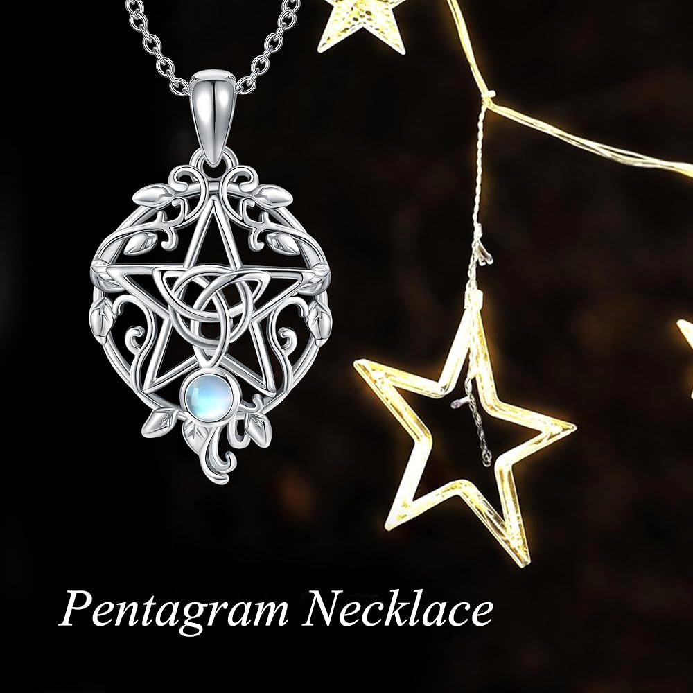 pentagram necklace 925 sterling silver pentacle moonstone necklace pentagram jewelry gifts for women