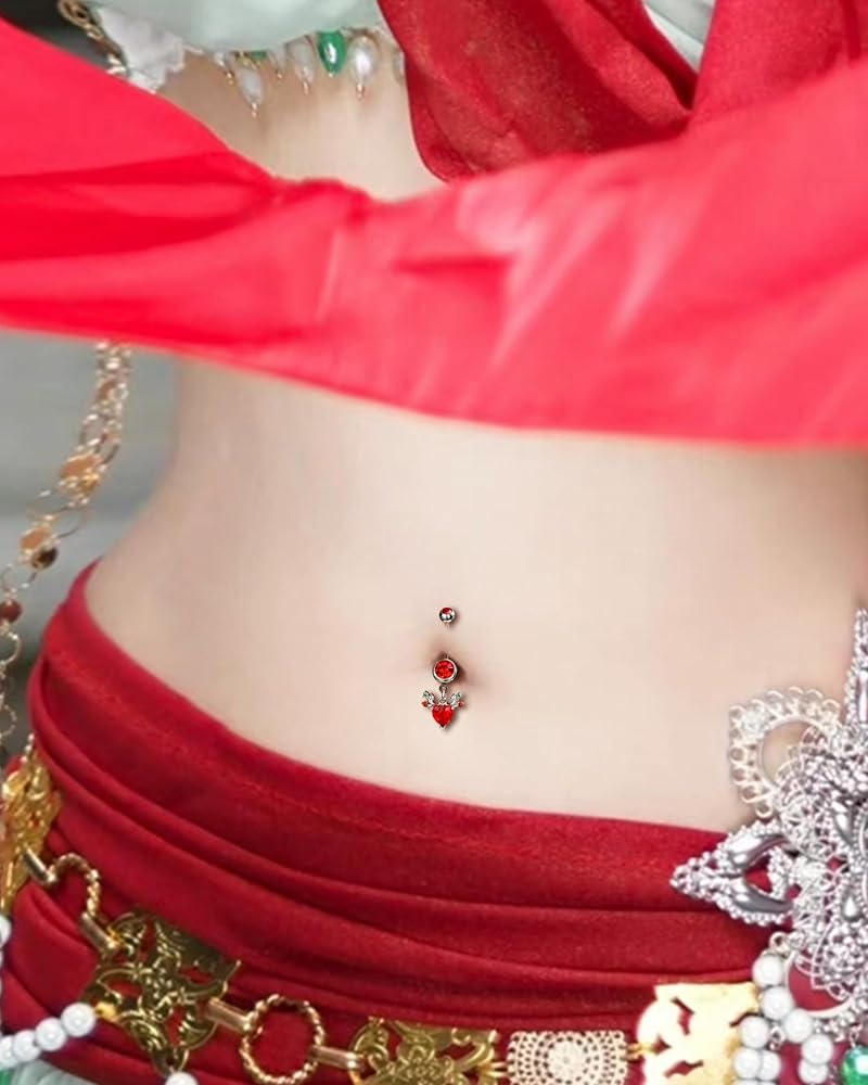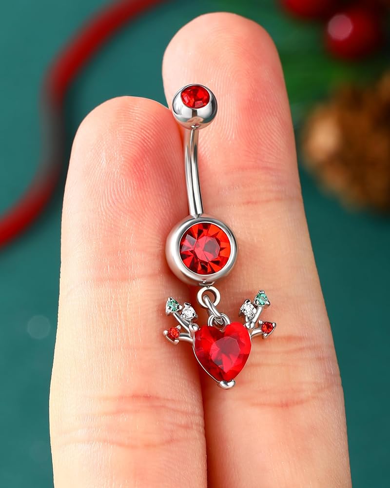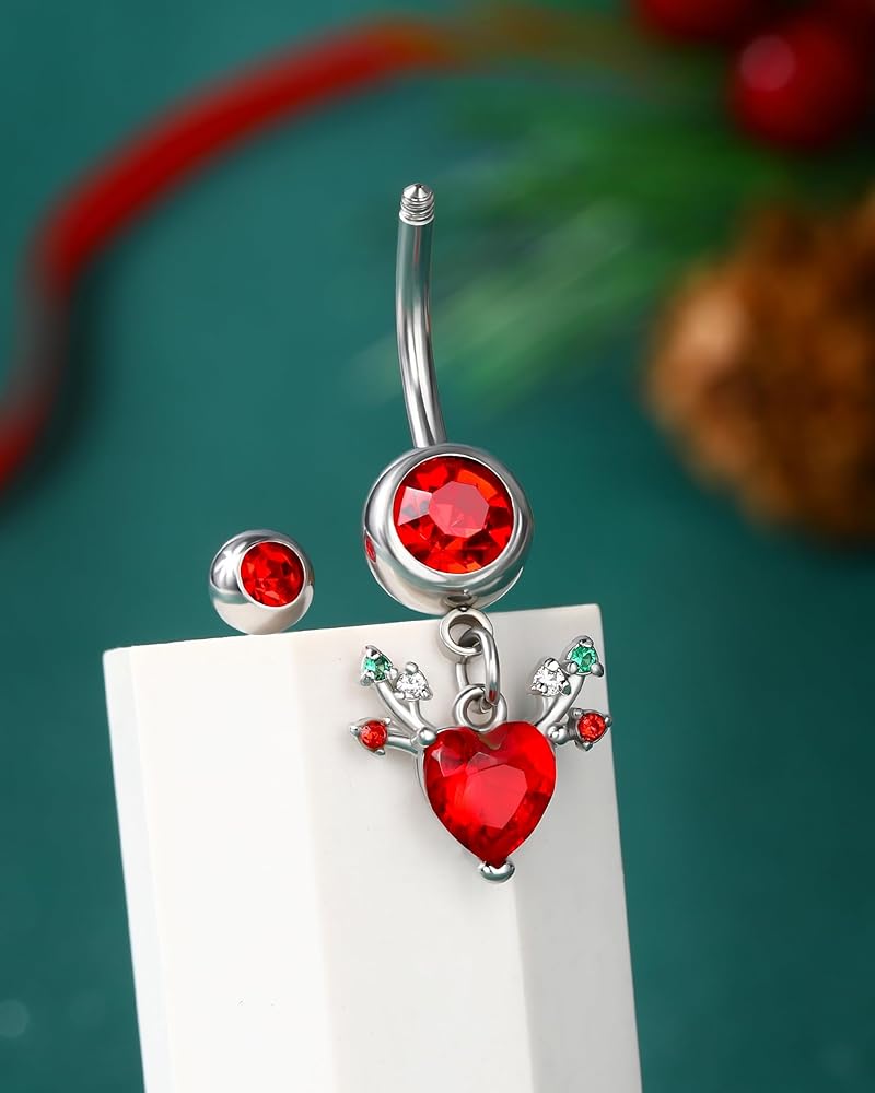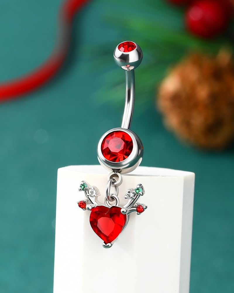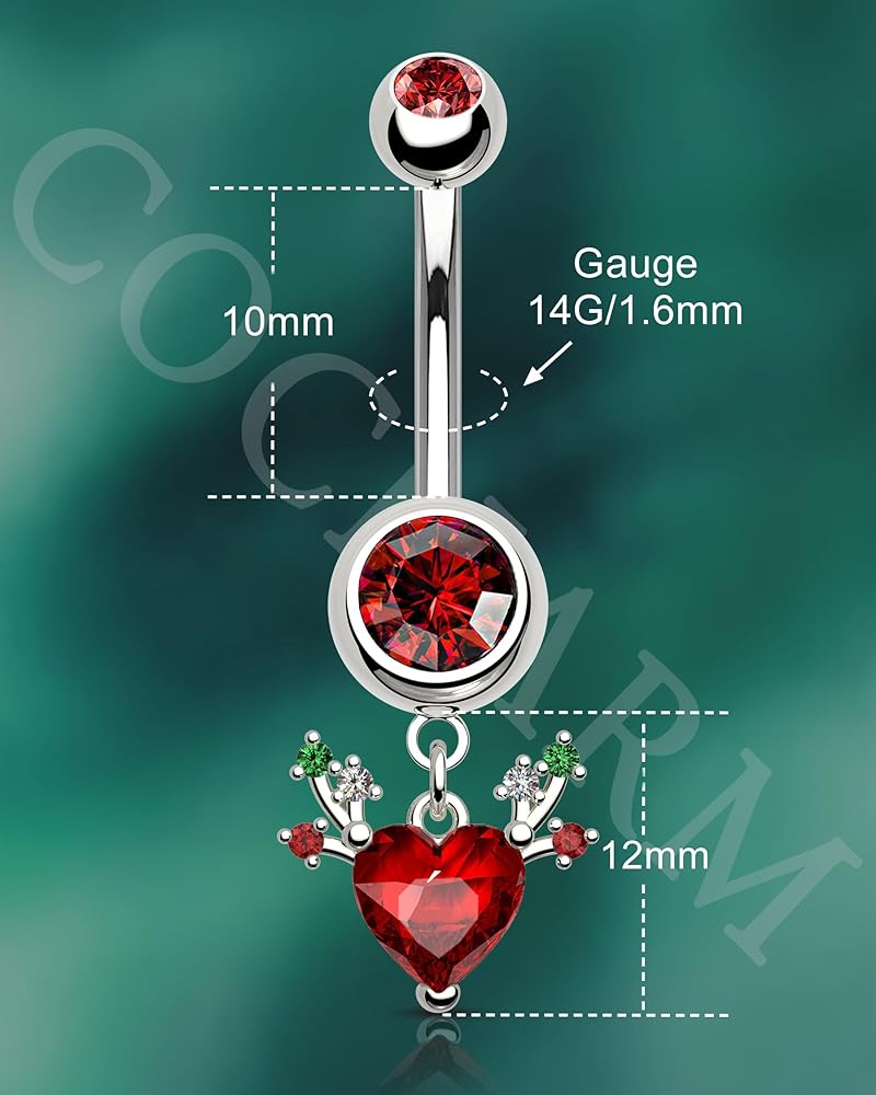 [التصميم] تعتمد حلقة زر البطن المتدلية هذه على عنصر عيد الميلاد الكلاسيكي --- قرون مع زركون تشيكوسلوفاكيا الأحمر لعيد الميلاد، أنيقة ولامعة، مناسبة لعيد الميلاد الخاص بك حتى الزي اليومي دون أي صعوبة.