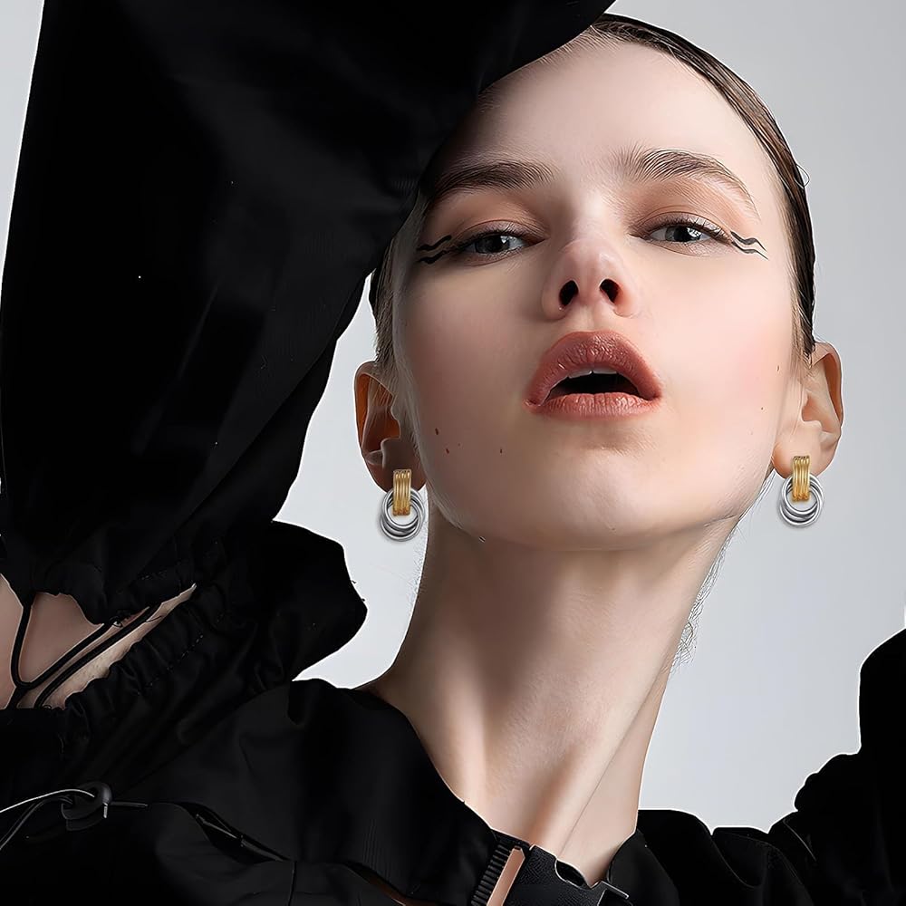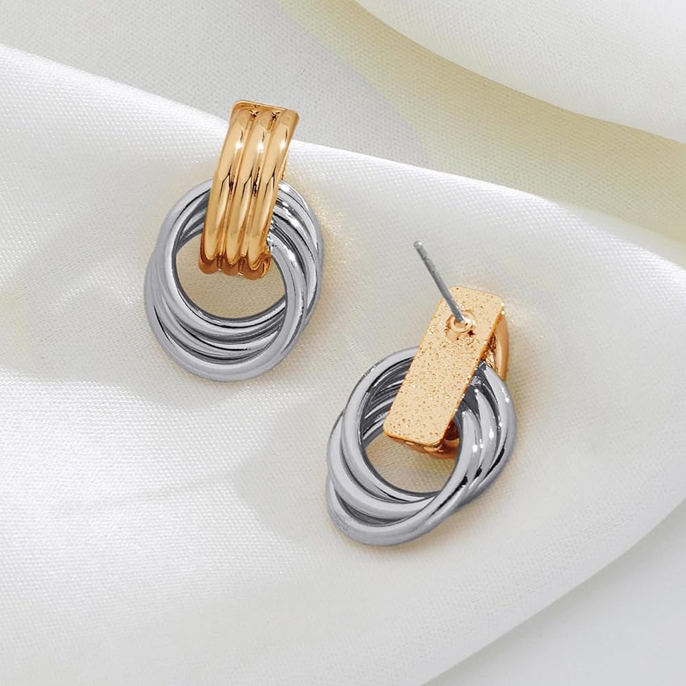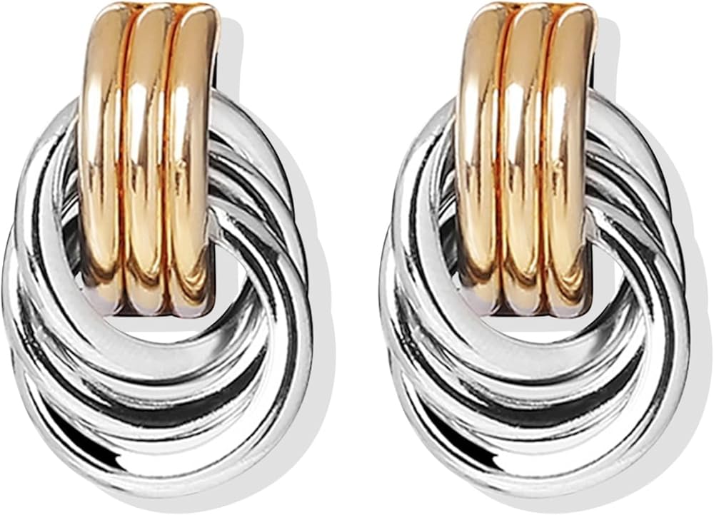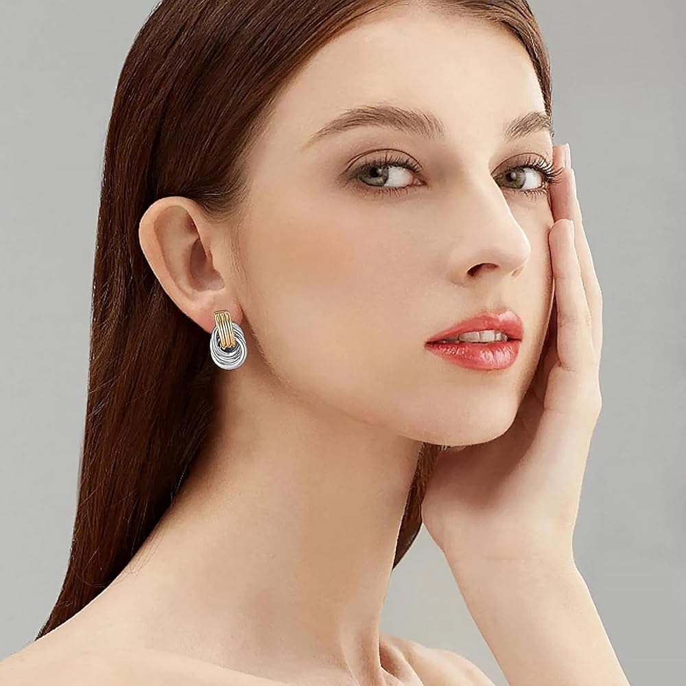 - أقراط ذهبية مكتنزة للنساء: احتضن الجماليات الهندسية مع تفاعل المربعات والعقد، مما يخلق جاذبية بصرية آسرة في موضة الذهب.