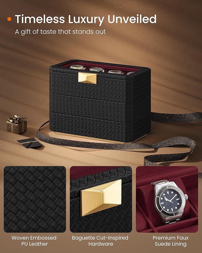 【هدية من الدرجة】اسعد أحبائك بمجموعة صندوق الساعة الرائعة هذه لمجموعات المجوهرات والساعات، وهي هدية مدروسة تمزج بين الوظيفة والجاذبية الجمالية لكل من هواة الجمع الناشئين والعشاق المتمرسين.