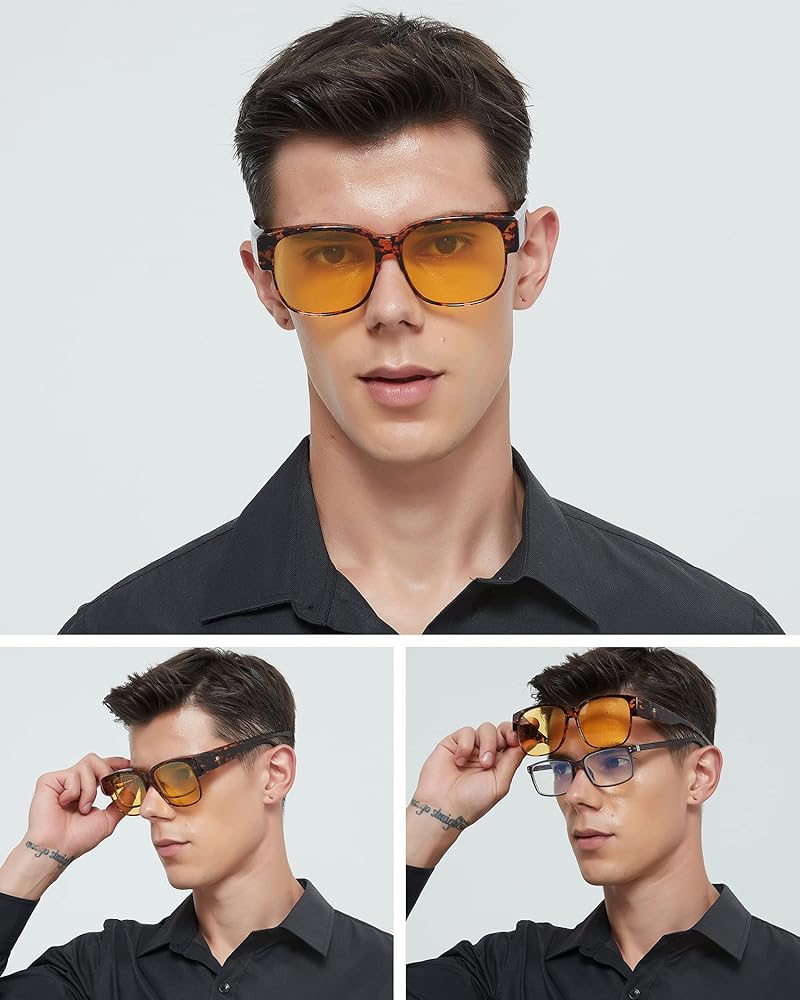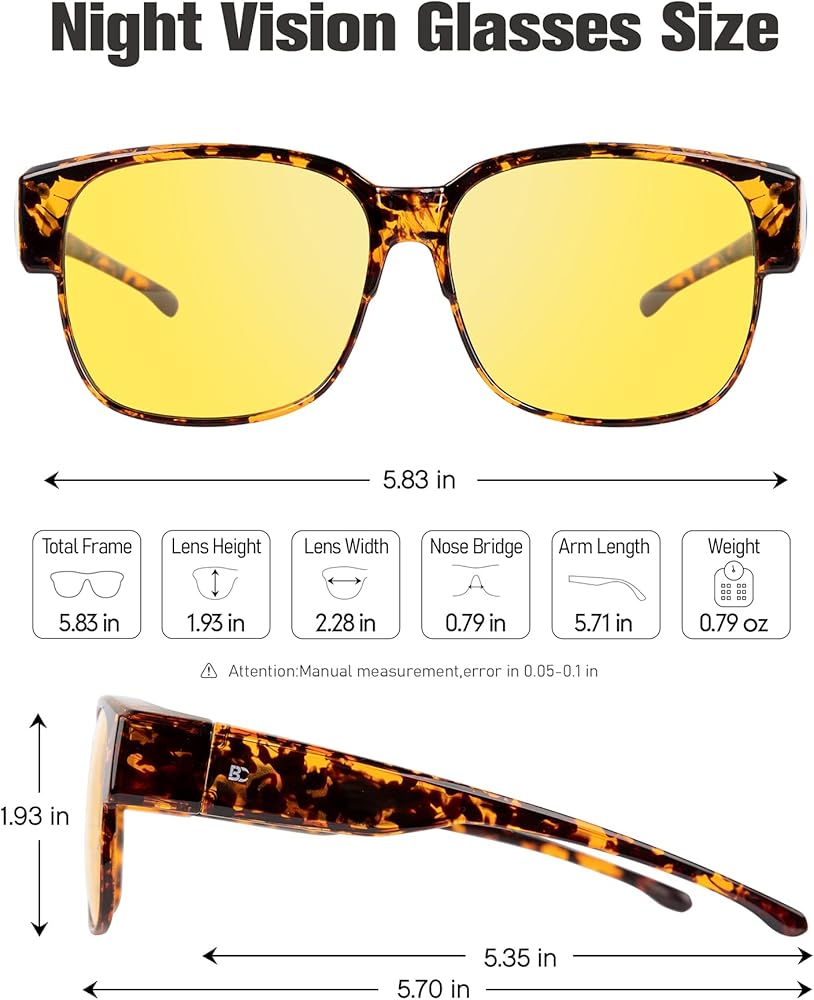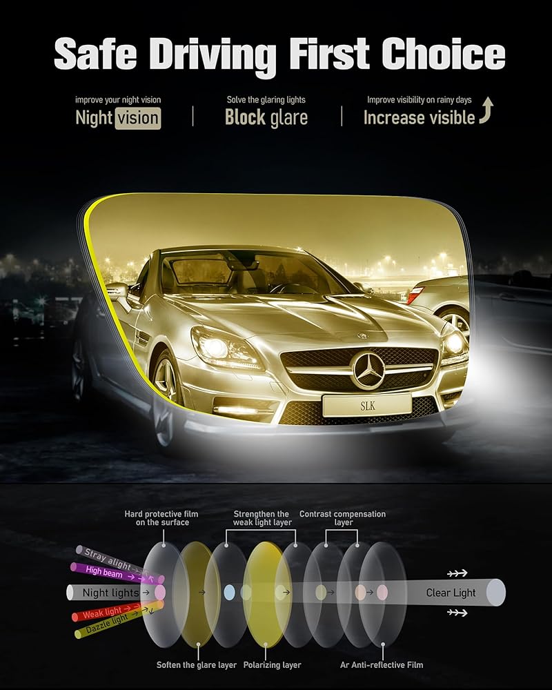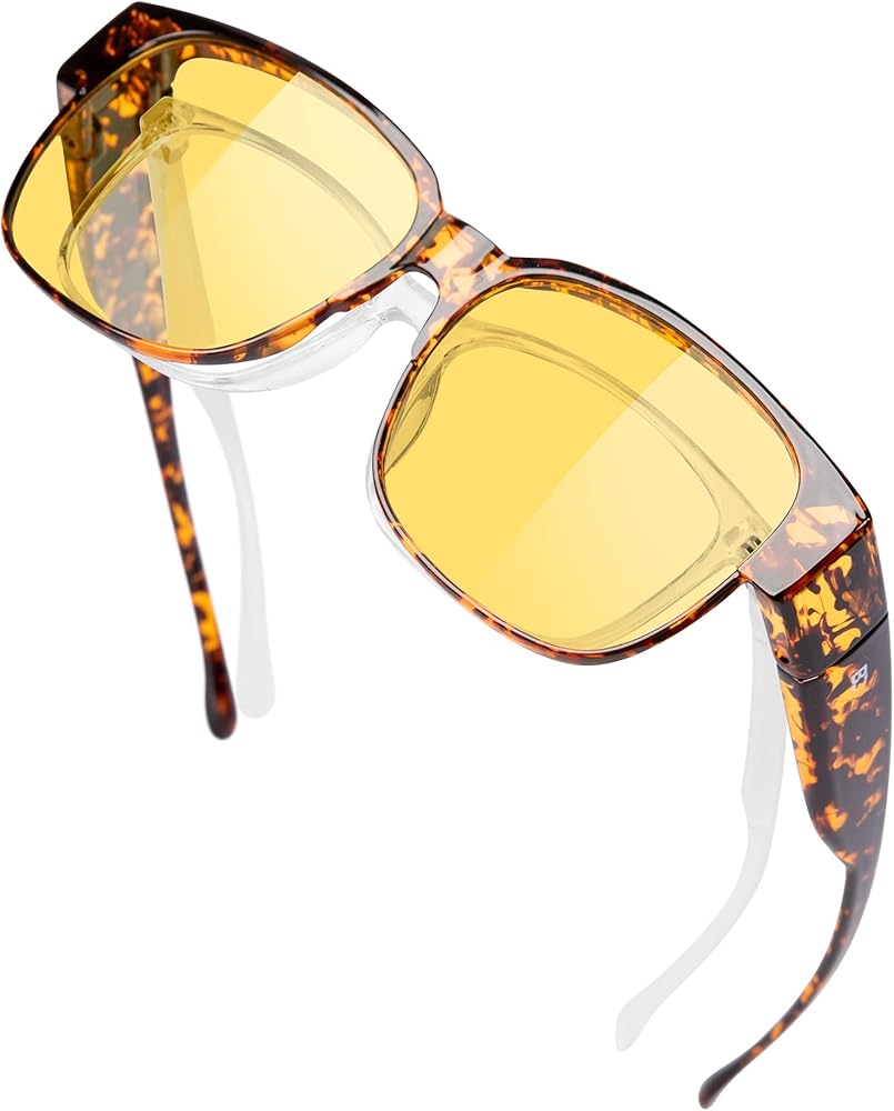 نظارات الرؤية الليلية من بيرسين للقيادة - تناسب النظارات المضادة للوهج فوق النظارات للرجال والنساء
