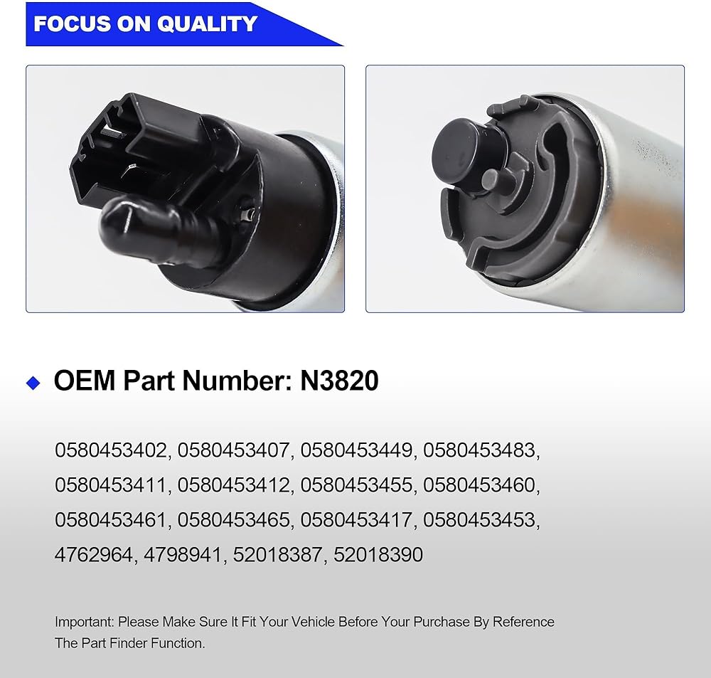 مضخة الوقود الكهربائية داخل الخزان N3820 مع مجموعة التثبيت الضرورية، وقود كهربائي بديل عالي الأداء داخل الخزان مع مضخة خرطوم مرنة مموجة متوافقة مع Hyundai وKia