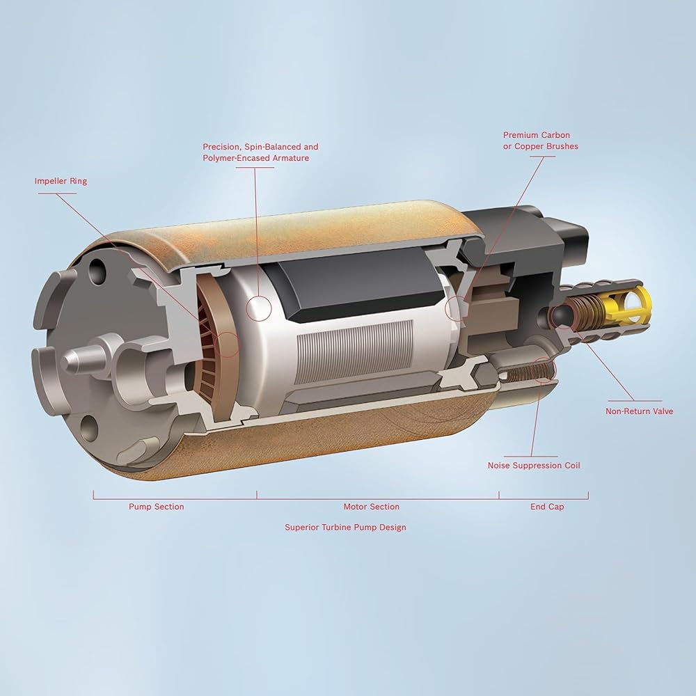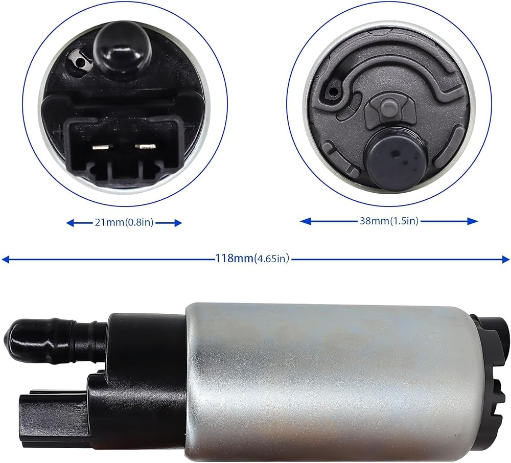 البيانات الفنية: قطر جسم المضخة: 1 1/2 بوصة (38 مم)، 100LPH/43PSI عند 12 فولت، قطر المدخل: 5/16 بوصة (8 مم)، قطر المخرج: 5/16 بوصة (8 مم)، تم اختبار مضخة الوقود الكهربائية بدقة قبل الشحن، تحقق من رقم الجزء للتأكد من التوافق قبل الشراء
