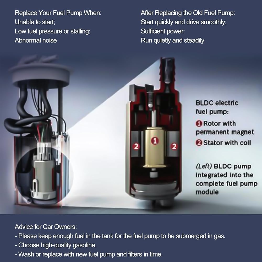 ملاحظات التثبيت: الاستبدال المباشر، تأتي مضخة الوقود Intank مع أجهزة عالمية لتناسب المركبات المختلفة. قد يكون هناك اختلاف بسيط في الحجم عن مضخة الوقود الأصلية ولكنها ستعمل