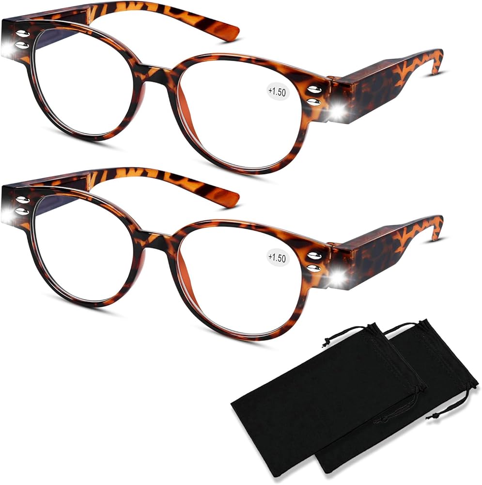[قارئ مزود بمصابيح] نظارات القراءة LED الساطعة بتصميم كلاسيكي وعصري، سهلة الحمل أو التخزين، مثالية لقراءة الكتب/المستندات/الصحف/التعليمات. هدية مدروسة للأجداد والآباء والأصدقاء والزملاء والجيران والأقارب في عيد الميلاد وأعياد الميلاد وعيد الأب وعيد الأم وعيد الشكر.