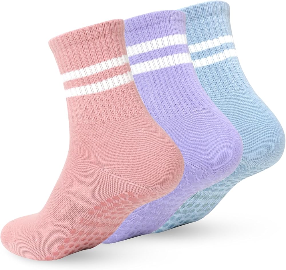 خامة ممتازة: جوارب اليوجا غير القابلة للانزلاق هذه مع مقابض للنساء مصنوعة من تركيبة من 90% قطن، 5% سباندكس، 5% نايلون. توفر المادة عالية الجودة مسامية وقابلة للتمدد لتبقى قدميك جافة ومريحة للغاية طوال جلسة الارتداء. يناسب مقاسات الأحذية النسائية الأمريكية 5-10. يمكن غسله في الغسالة