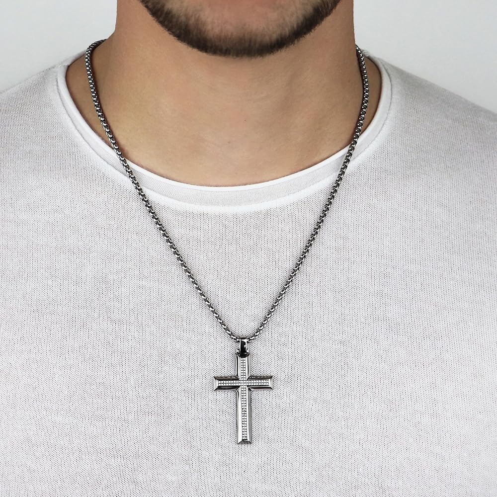 VERSATILE STYLE: Sleek and masculine, this cross necklace is suitable for men of any age from teens to seniors and can be dressed up or down.