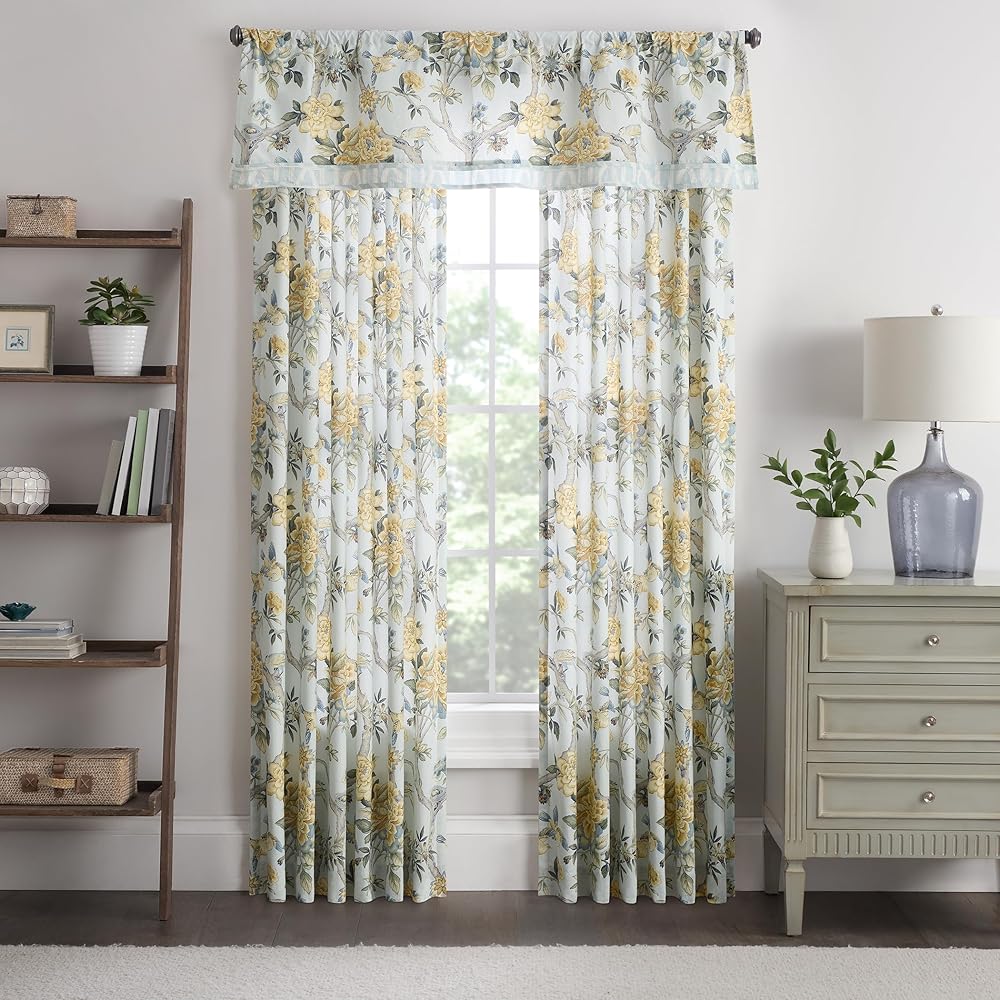 Give any room a refreshed look with the Peony Gardens Window Curtains by Waverly. Our curtain panels feature a traditional design in a yellow and blue floral color palette to complement all types of home décor. Use these light-filtering curtains to bring an element of luxury and privacy to your any room in your home. The back tab rod pocket header of these Waverly curtains allows for effortless installation, making these curtains a hassle-free solution for transforming your space. Each curtain panel has a rod pocket, we recommend a 1.25 rod for maximum styling. The lined design & the 120-thread count of these curtains offer enhanced privacy and light control. Machine wash warm with similar colors. Use non-chlorine bleach. Tumble dry low. Warm iron if needed. Do not dry clean. Upgrade your home décor with the timeless elegance of the Waverly Home Décor. Add a touch of sophistication and elevate your space with our home furnishing products including fabrics, wall coverings, bedding, curtain toppers and valances, decorative accessories, and more.