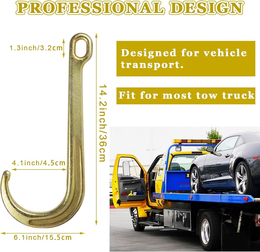 • PROFESSIONAL DESIGN: JMIATRY clevis j hooks towing are designed for vehicle transport. It greatly shortens the length of the chain and is perfectly fit for most tow trucks and various kinds of vehicles