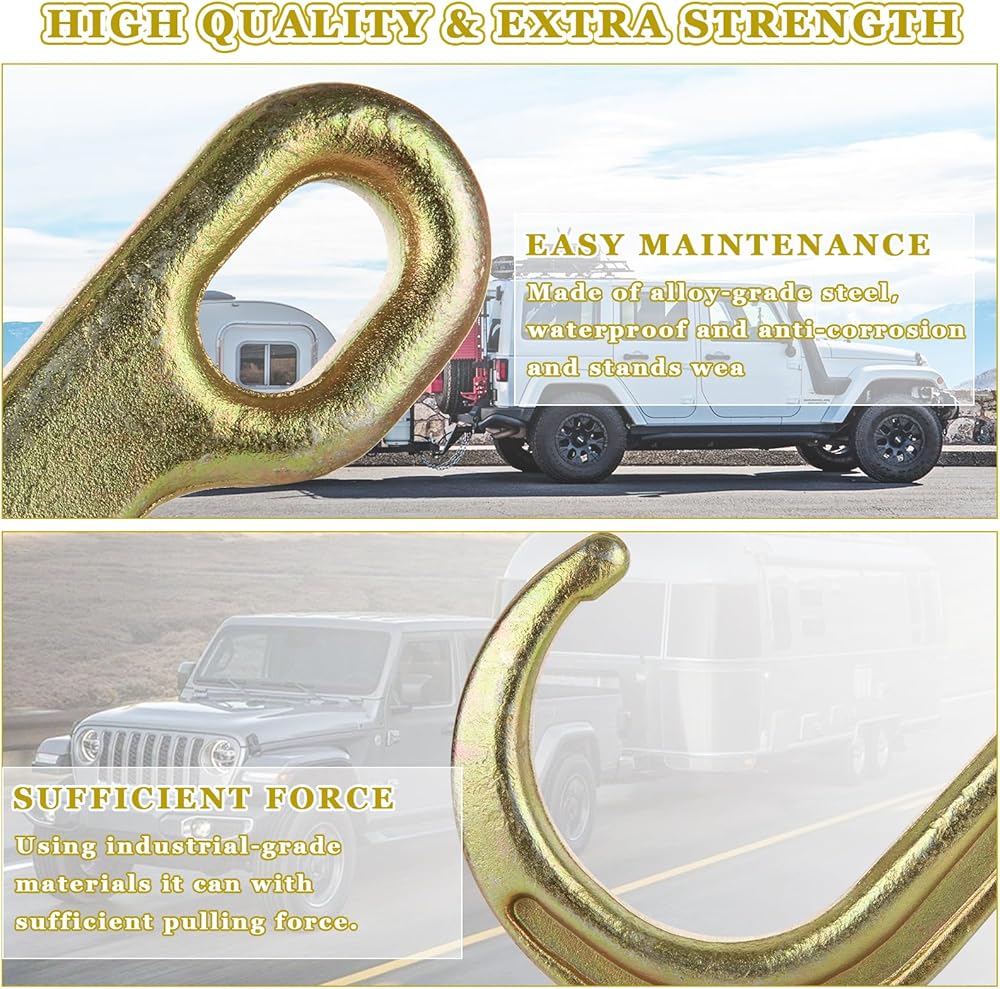 • STURDY & DURABLE: Made of chrome-grade 70 steel with an anti-corrosion coat, the towing j hooks are waterproof, sturdy, withstand snow, and rain, are durable, and have sufficient pulling force