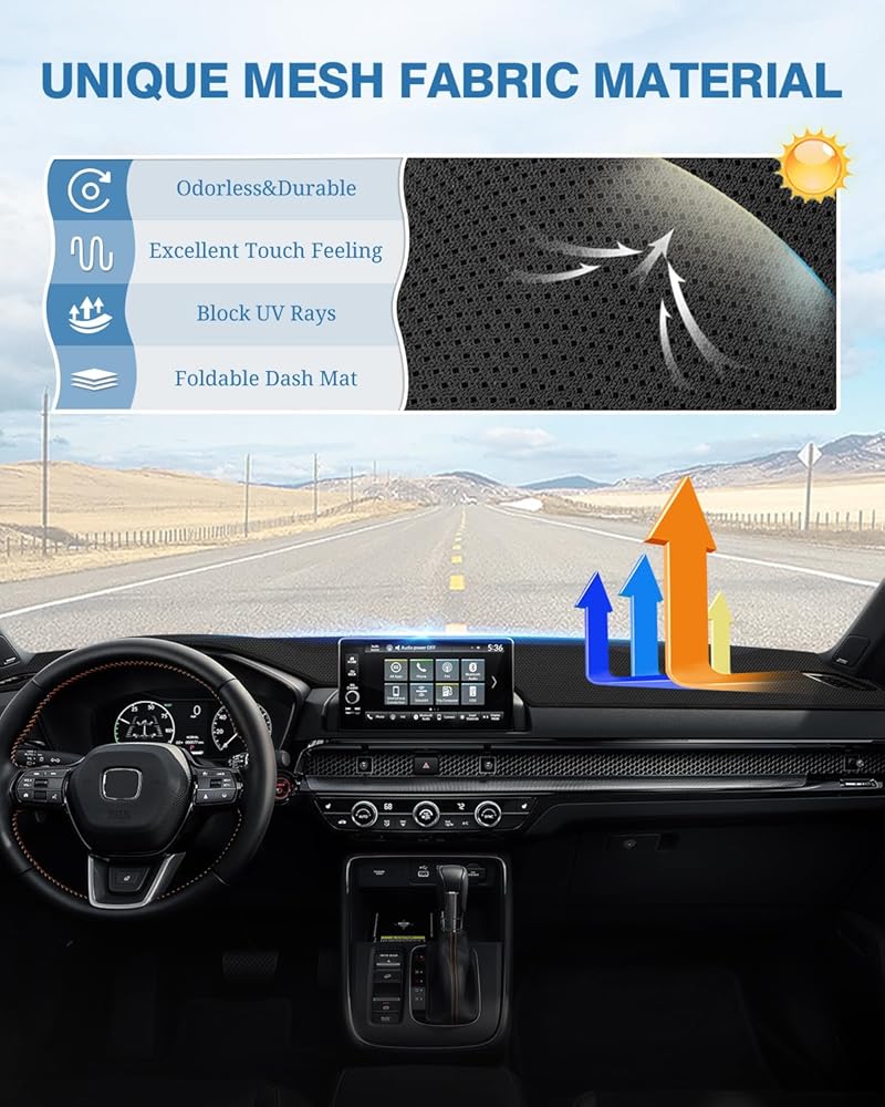 FIILINES غطاء داش لسيارة Honda CR-V CRV 2023-2025، غطاء حصيرة لوحة القيادة 2023 2024 CRV ملحقات ظلة شبكة غير قابلة للانزلاق بدون وهج أسود