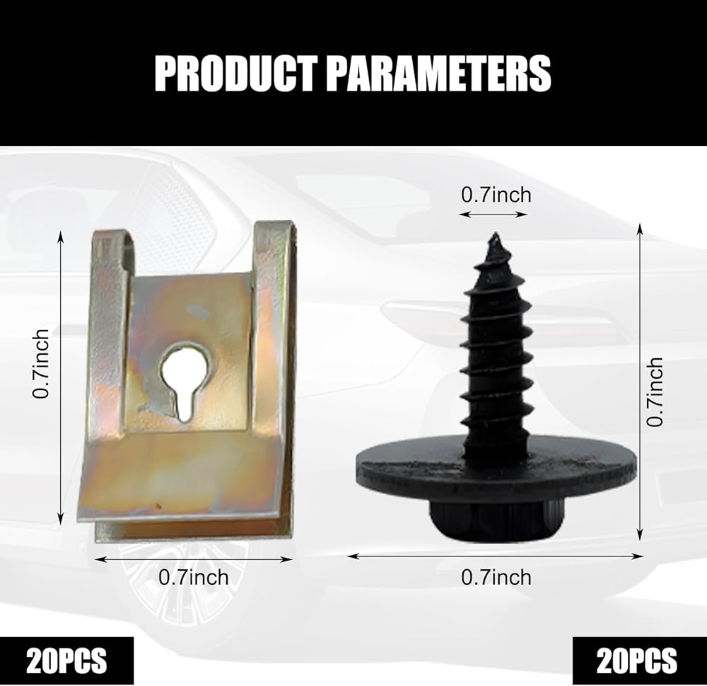 • Box Contents: You will receive twenty 0.7" x 0.74" car body fixing screws and twenty 0.51" x 0.82" U-shaped clips. If you have any question on use, kindly contact us at any time directly, we will solve the problem for you within 24 hours on weekdays.