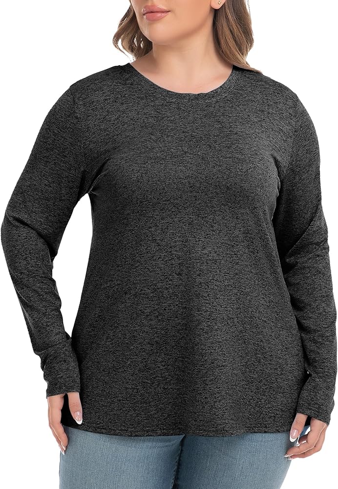 【قميص يوجا مريح】قمصان علوية ناعمة بمقاس كبير للسيدات، مصنوعة من 95% بوليستر و6% ألياف لدنة. ألياف لدنة ذات تمدد فائق، صديقة للبشرة، مسامية، ماصة للعرق، نسيج فائق النعومة لتتمكن من الجري واليوجا وصالة الألعاب الرياضية وما إلى ذلك.