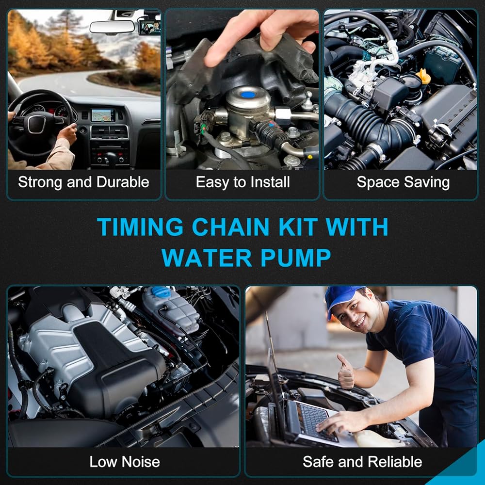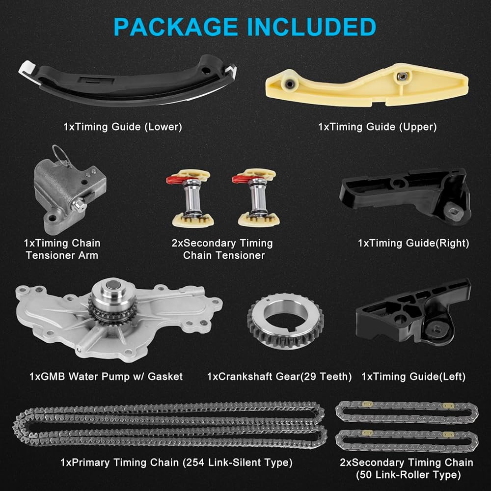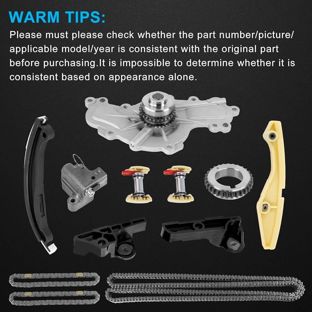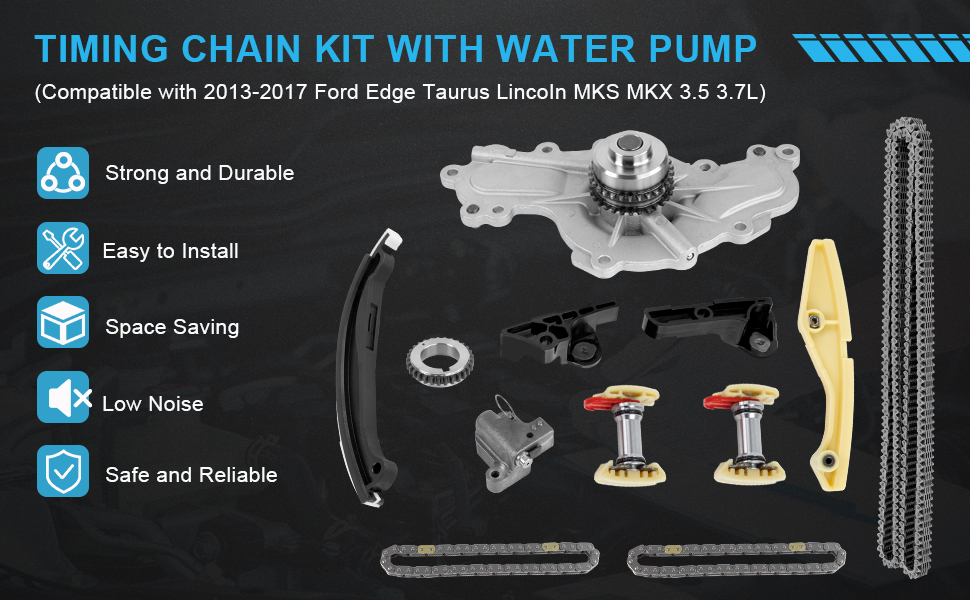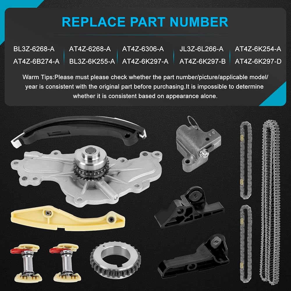 مجموعة سلسلة التوقيت مع مضخة مياه - متوافقة مع 2013-2017 Ford Edge Explorer Flex Police Interceptor Sedan Utility Taurus، من أجل Lincoln MKS MKX 3.5 3.7L استبدال BL3Z-6268-A، AT4Z-6268-A
