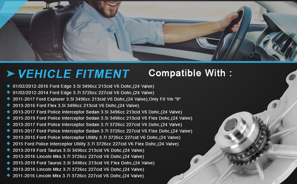 [𝐕𝐞𝐡𝐢𝐜𝐥𝐞 𝐅𝐢𝐭𝐦𝐞𝐧𝐭]- مضخة المياه لمجموعة سلسلة التوقيت bl3z-6268-a متوافقة مع Ford edge 3.5l 3496cc 213cid v6 dohc (24 صمامًا) 01/02/2012-2016، لفورد إيدج 3.7l 3726cc 227cid v6 dohc (24 صمام) 01/02/2012-2014، لفورد إكسبلورر 3.5l 3496cc 213cid v6 dohc (24 صمام) 2011-2017، يناسب فقط vin " 8 ". لفورد فليكس 3.5 لتر 3496 سي سي 213سيد V6 دوهك (24 صمام) 2013-2016.