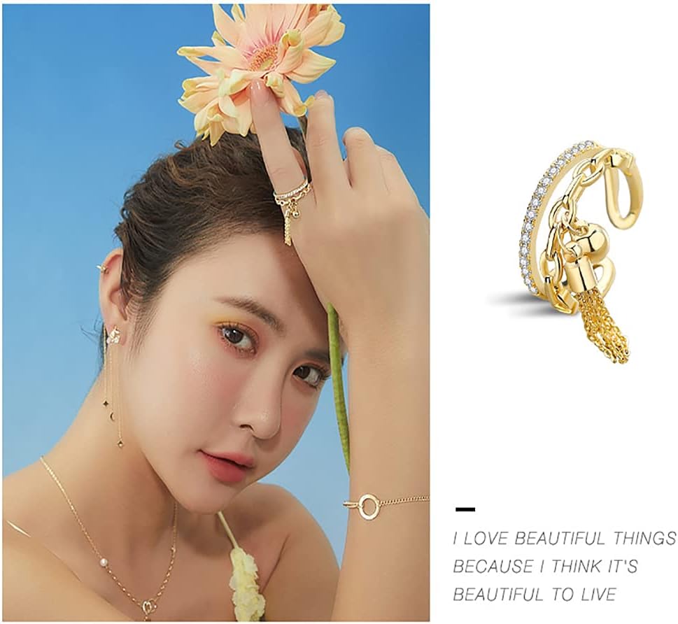 AJUSTABLE RING SIZE-ONE SIZE FITS ALL-- The size of this ring is adjustable. our rings are made in a professional environment with inset cubic zirconia and adjustable tasseled rings. In a retro bohemian style, you can wear them elegantly and coolly, showing your taste and personality