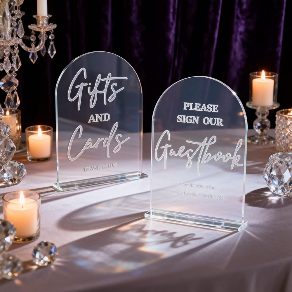 • مواد فاخرة: لافتات الزفاف المزخرفة مصنوعة من صفائح أكريليك بسمك 3 مم مع حوامل متينة. كما أن التصميم المقوس، واضح تمامًا، كل ذلك يظهر أناقته ونبله