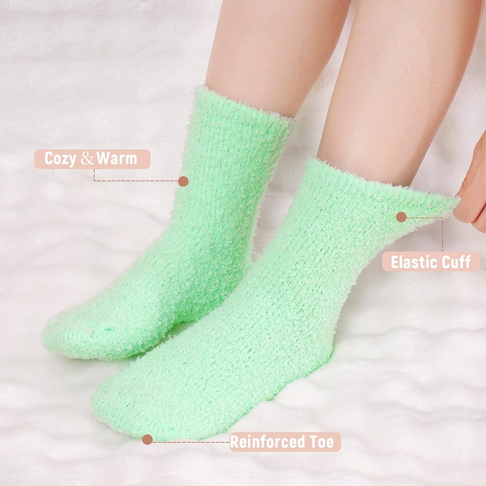 • Warm Women's Socks: These winter fuzzy socks bulk can help your feet feel warm, making them less cold in winter. The comfortable fabric allows you to choose to wear our fuzzy winter socks while sleeping, helping you have a sweet night