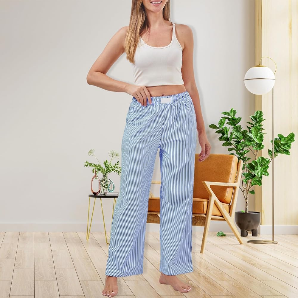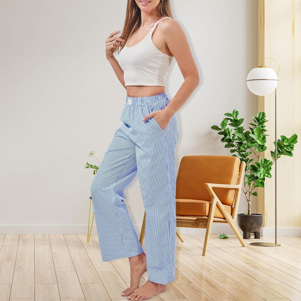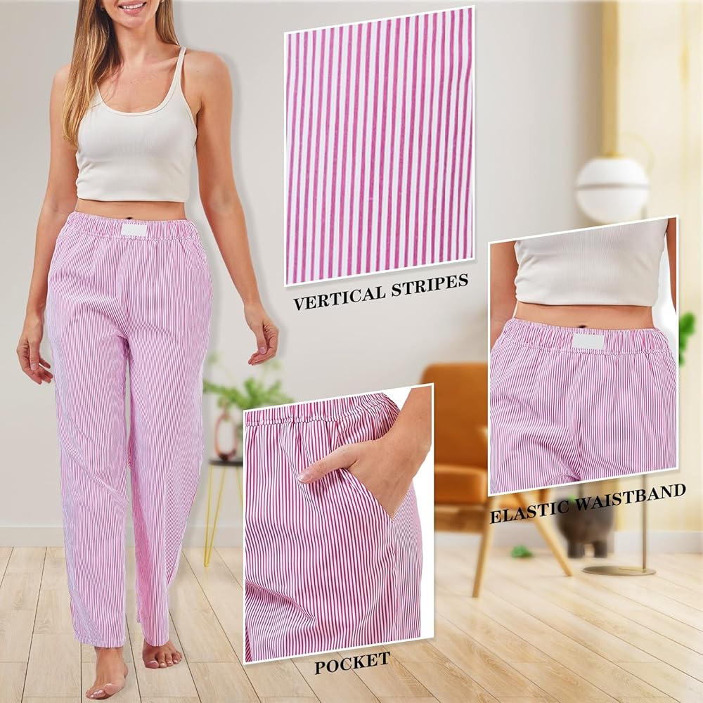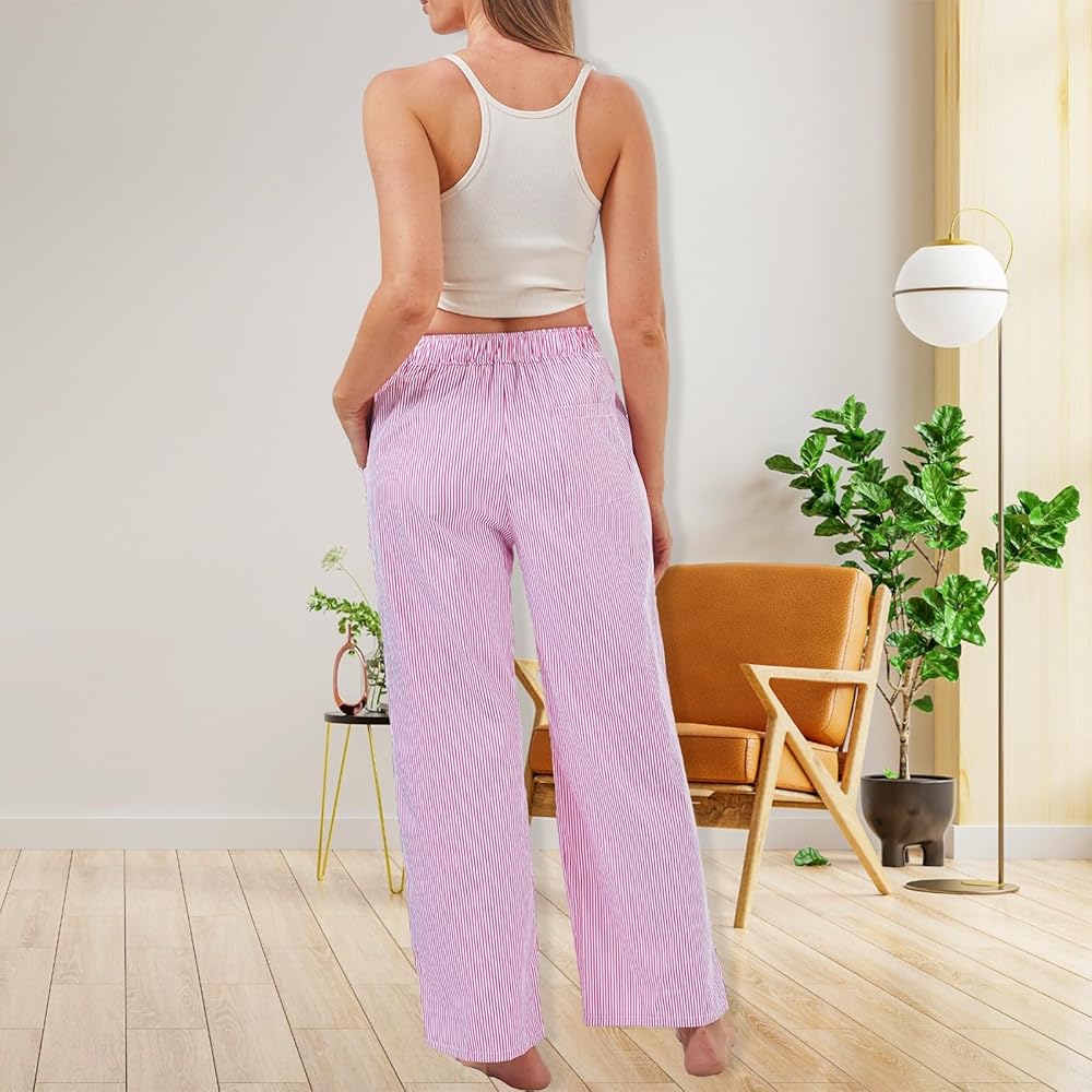 خامة عالية الجودة: الجزء السفلي من البيجامة المخططة مصنوع من مادة البوليستر عالية الجودة، وهي ناعمة وصديقة للبشرة، وخفيفة الوزن ومسامية، وقوية وقوية، مع خياطة ممتازة، ومناسبة للارتداء طوال اليوم، مما يمنحك تجربة ارتداء مريحة