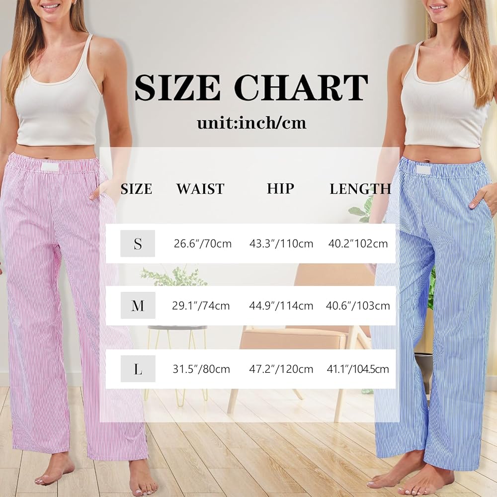 الكمية والمقاس: سوف تحصل على زوجين من السراويل النسائية المخططة الفضفاضة بألوان مختلفة لتلبية احتياجاتك المختلفة المتطابقة؛ البنطلونات لدينا متوفرة بثلاثة مقاسات مختلفة (صغير، متوسط، كبير) لتناسب النساء من جميع الأحجام