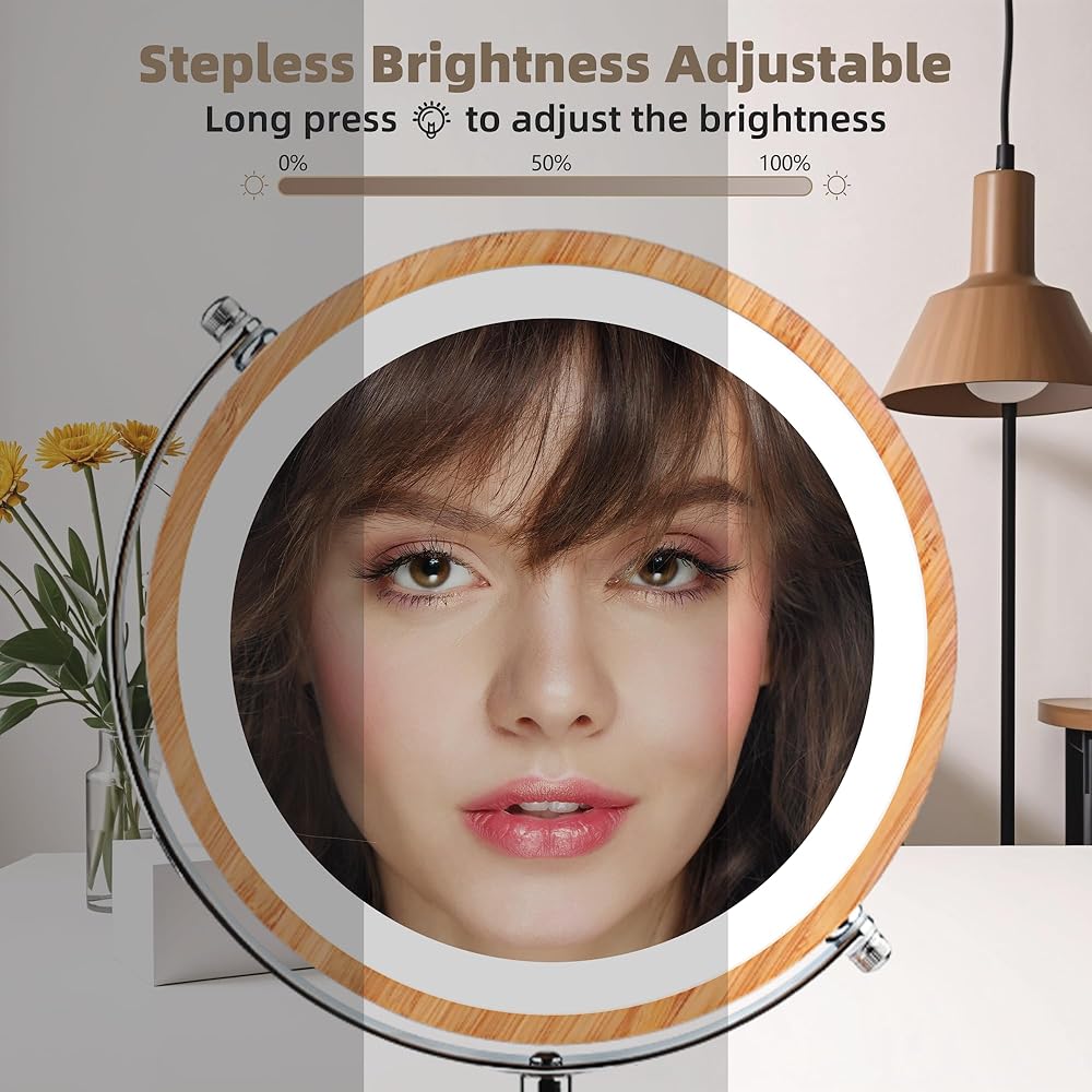【مرآة زينة LED وقاعدة من الخيزران بنسبة 100%】مرآة زينة كبيرة مقاس 8 بوصات مصنوعة من إطار من الخيزران الطبيعي وقاعدة مع حامل معدني. الخيزران الطبيعي صديق للبيئة. سهل التركيب، فقط قم بربط القاعدة لإنهاء التثبيت واستخدامها مباشرة. كمساعد للمكياج، يمكن أن توفر لك مرآة شفافة، بحيث يكون وجهك بالكامل في لمحة واحدة. ملحوظة: الحجم الفعلي للمرآة هو 6 بوصات.