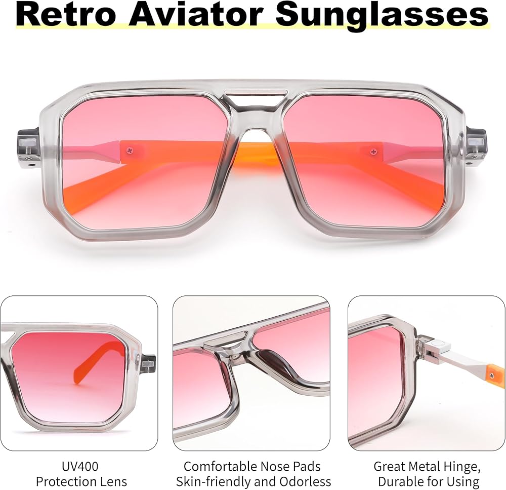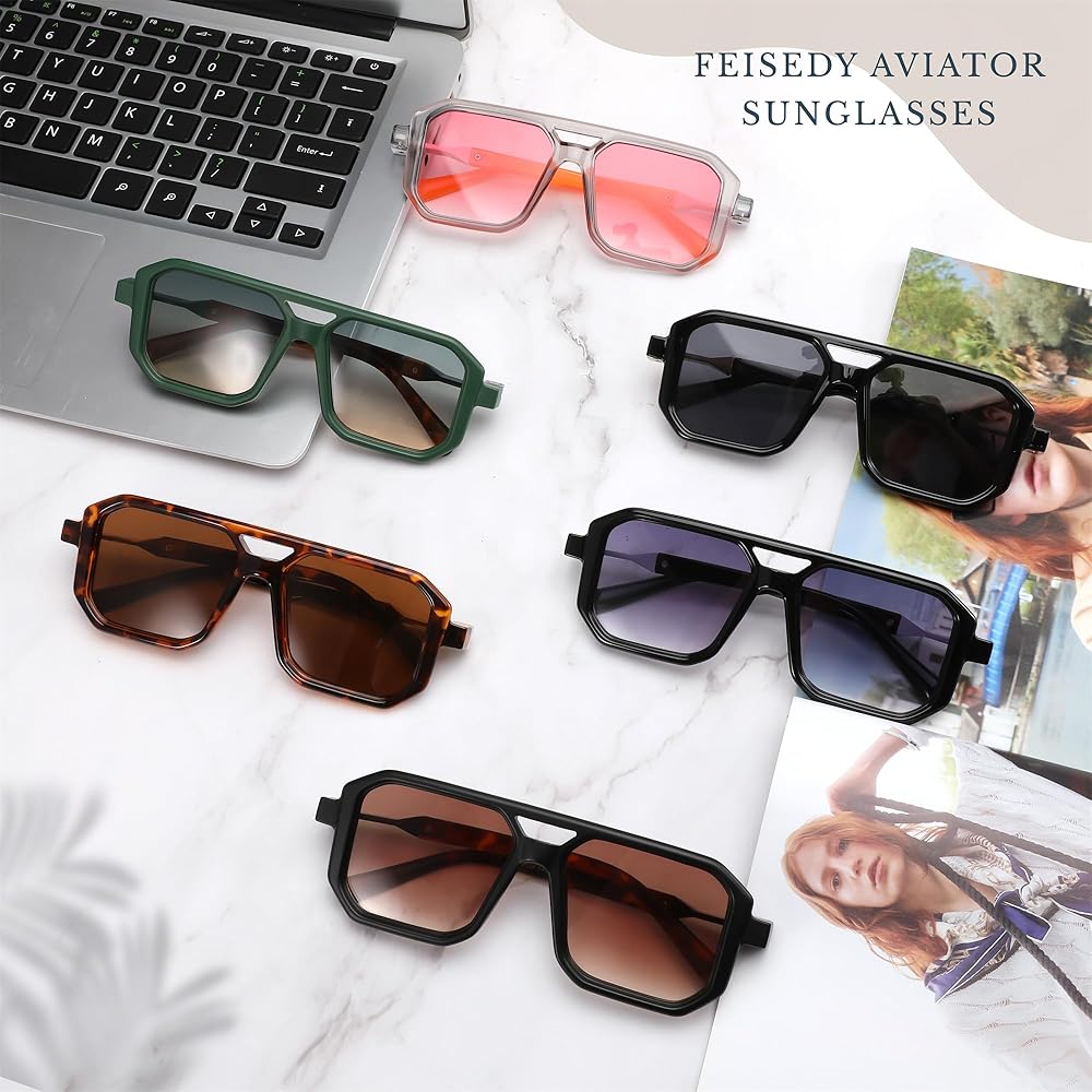 [تصميم كلاسيكي وأنيق] تتبع نظارات FEISEDY الشمسية تصميم نظارات Aviator الكلاسيكية في السبعينيات، وتحتفظ بعنصر الشعاع المزدوج، وتستخدم العدسات المسطحة ومجموعة متنوعة من مجموعات الألوان لجعلها أكثر أناقة. حافة الإطار مرصعة بأظافر الأرز المعدنية من أجل الشعور بالتفاصيل.