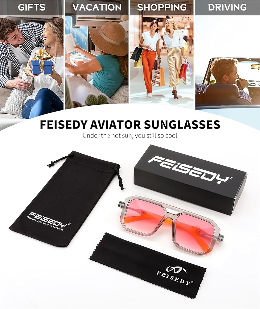 [مناسبة لمجموعة واسعة من الأنشطة] نظارات FEISEDY الشمسية الكلاسيكية مناسبة للعديد من المناسبات، مثل قيادة التسوق والسفر والتقاط الصور والحفلات وما إلى ذلك، لا ينبغي تفويت منتجات الموضة. ماذا تنتظر؟ دعونا نتحرك.