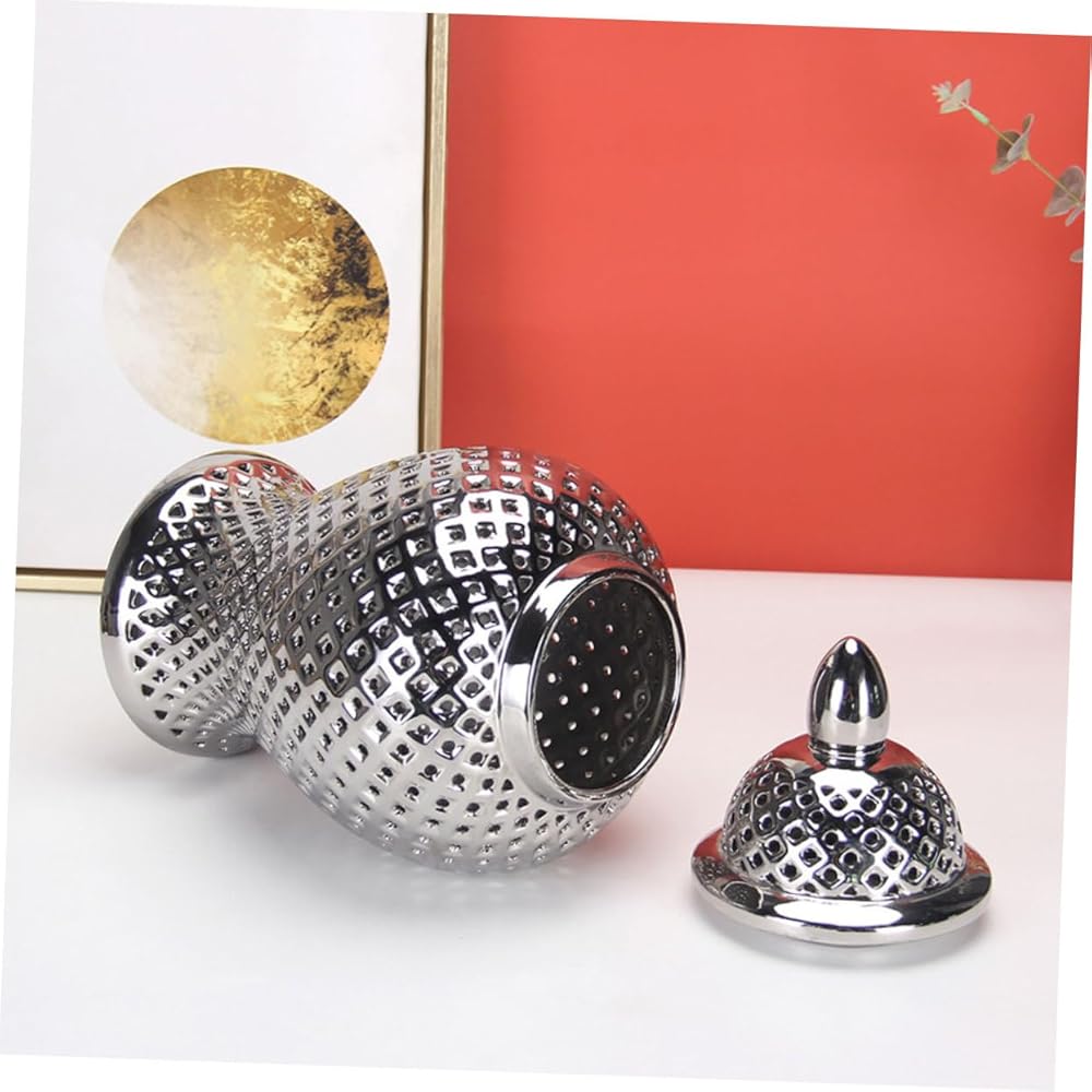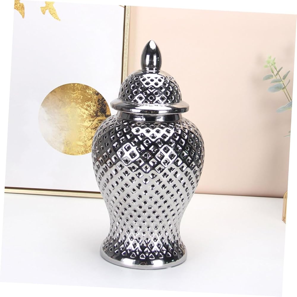 علبة شاي سيراميك -- جرة زنجبيل شبكية بغطاء ديكور منزلي مذهل مع مزهرية زهور شبكية مستوحاة من البحر الأبيض المتوسط لغرفة المعيشة وتزيين المطبخ، مزهرية الزهور مناسبة لأولئك الذين يحبون النباتات ذات التصميم الأوروبي الخاص والتصنيع الرائع.