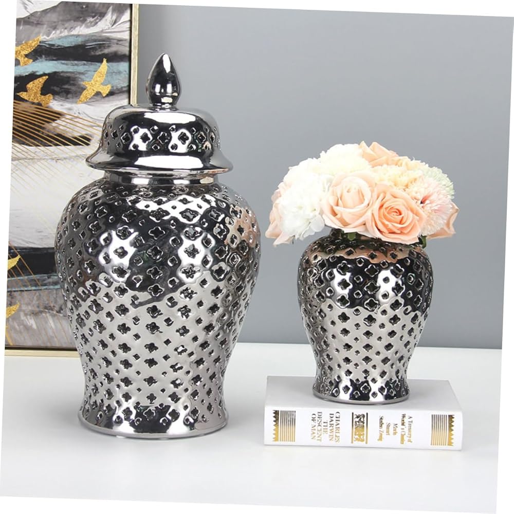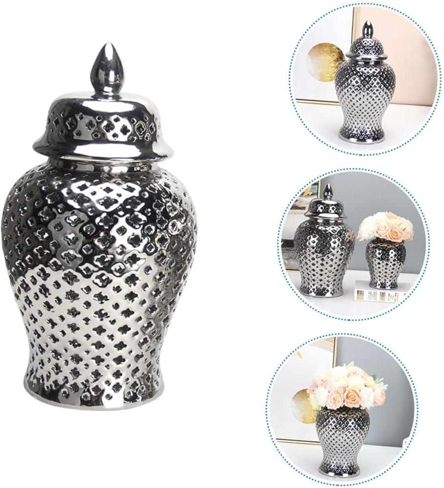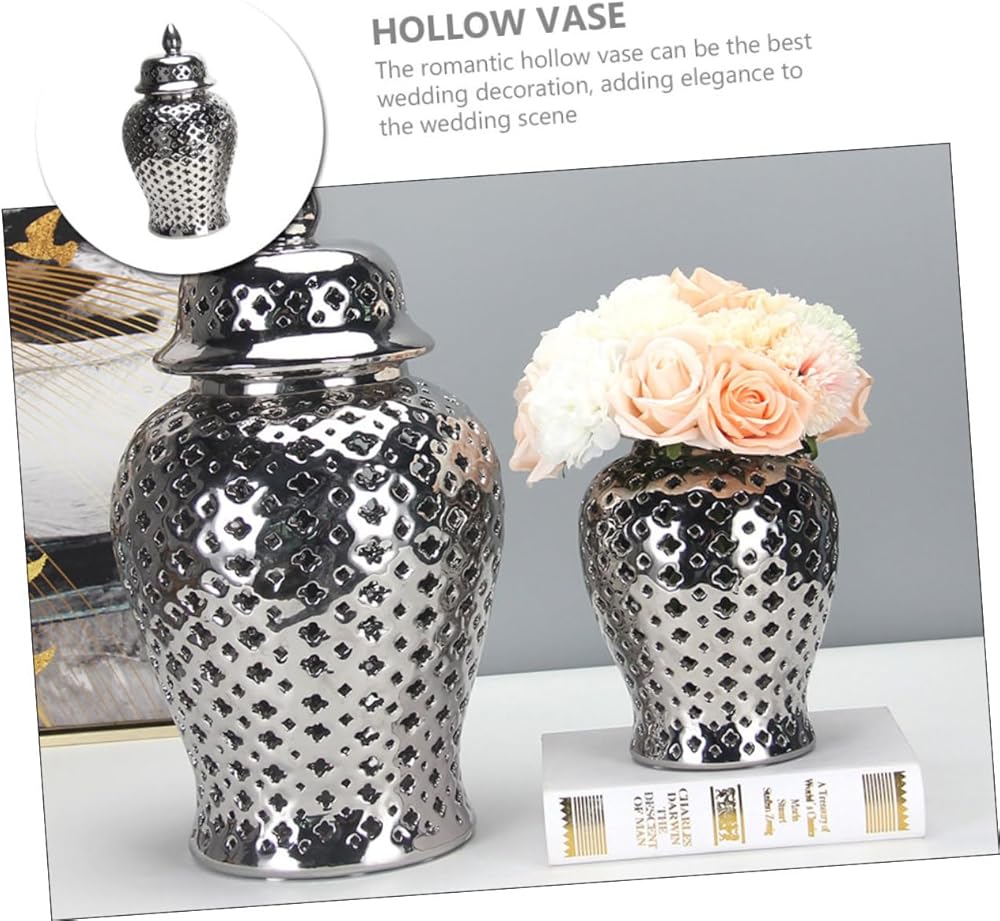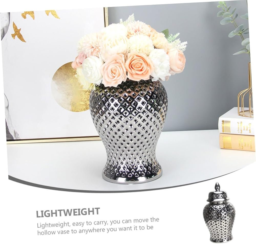 حامل زهور سيراميك - زجاجة تخزين برطمان الزنجبيل - يمكن استخدامها أيضًا كقطعة مركزية لعيد الميلاد، أو عيد الشكر، أو رأس السنة الجديدة، أو عيد الحب، أو الحفلات، أو العشاء، أو العطلات، أو أعياد الميلاد، أو غيرها من المناسبات الخاصة.