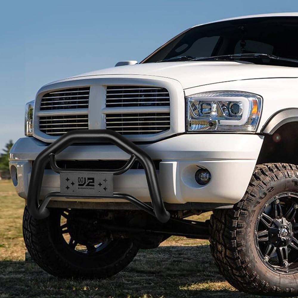 J2 Engineering J2-PT-ZTL-8283 من الفولاذ الكربوني المصد الأمامي للشواية أنبوبي الثور بار متوافق مع دودج رام 1500 2002-2008، أسود