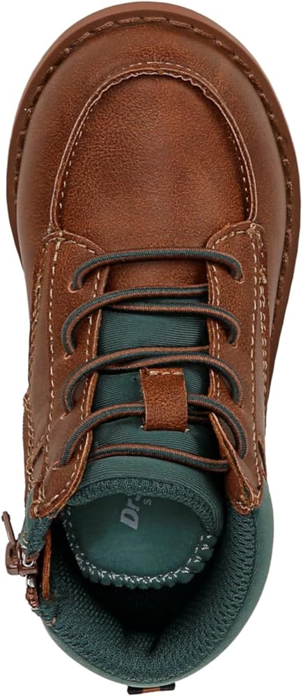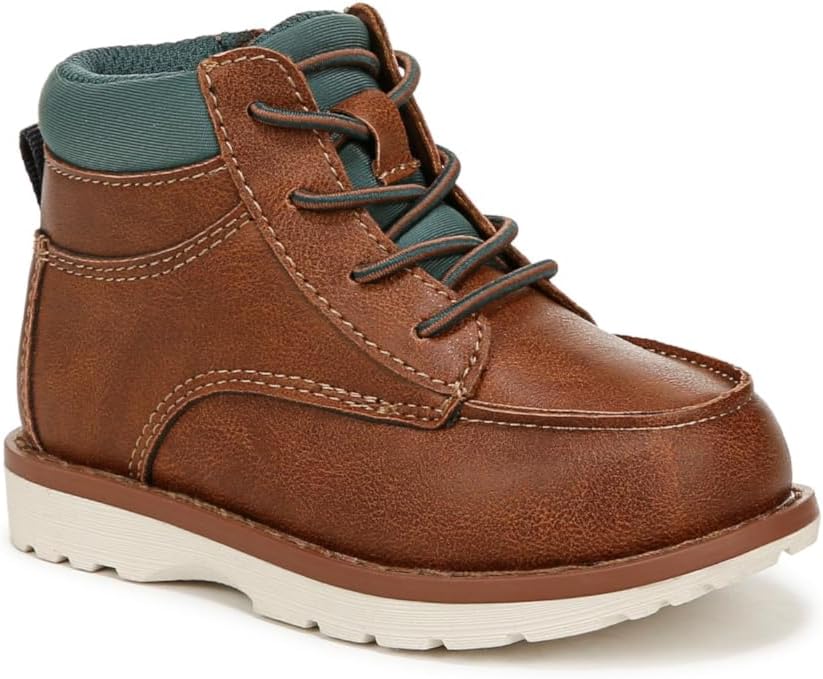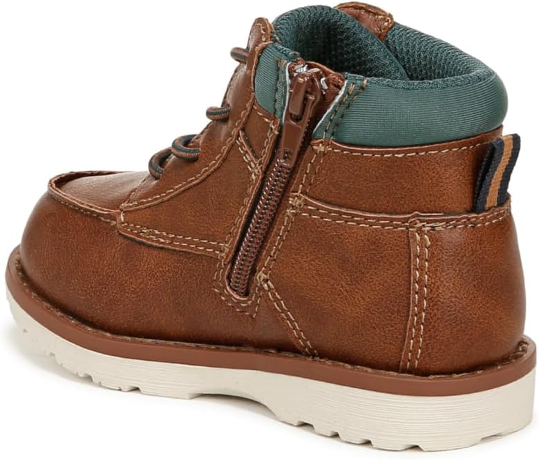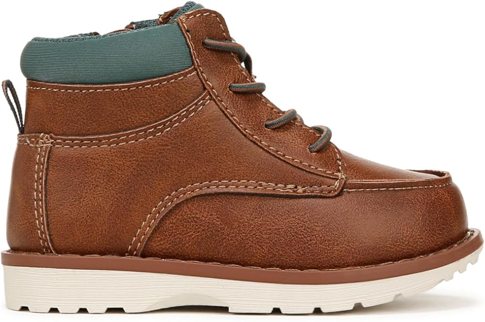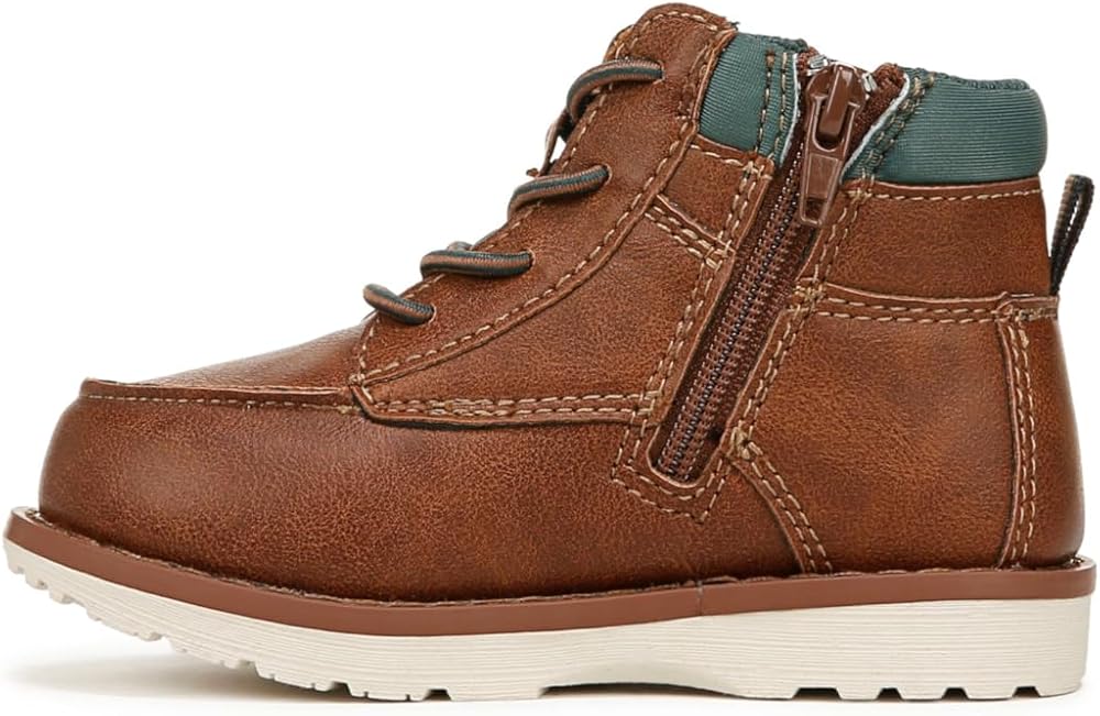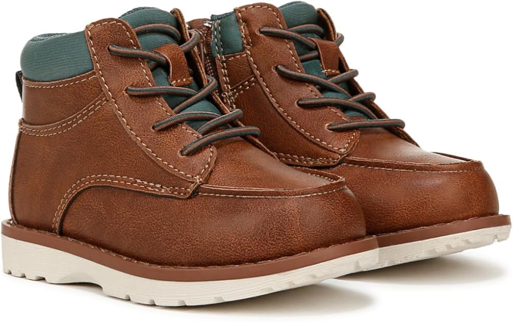 Our bestselling chukka boots, made for the littlest hikers with toddler-approved accents. MATERIALS: Faux leather upper and soft fabric lining. FIT: Inside zipper closure for easy on/off. MOVEMENT: Lightweight, flexible construction moves with you. FEEL-GOOD FLEX: Ultra-flexible outsoles with extra grip and cushioning. STYLE: Ankle boots for kids with lace detail, convenient zipper closure, stitch detailing, and 1 1/4 inch lug sole. CONSCIOUSLY PACKAGED: This style is shipped in an environmentally preferred 1-piece box made with primarily recycled materials that can be recycled & soy-based inks. Little boys shoes and little girls shoes that are comfy, playground-ready, and cute to boot.