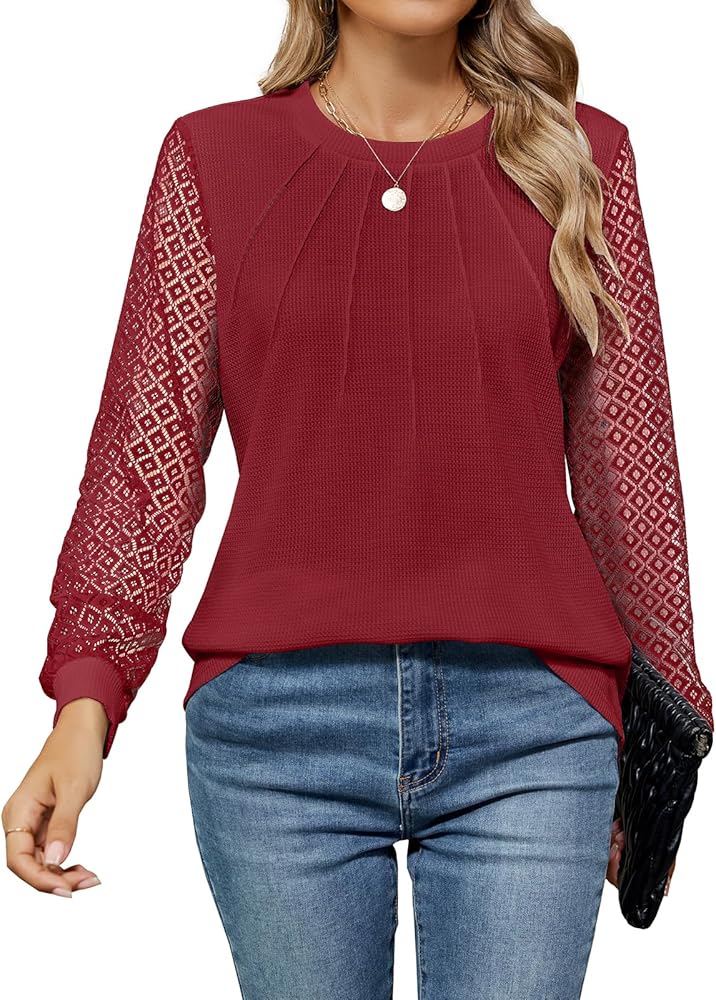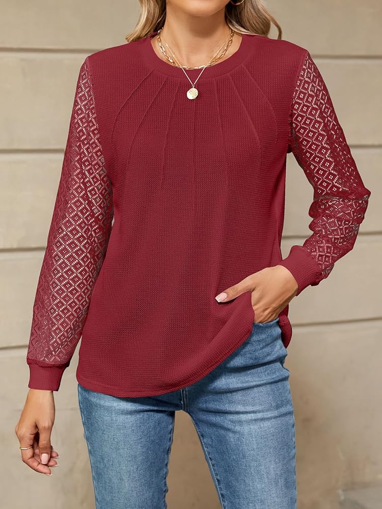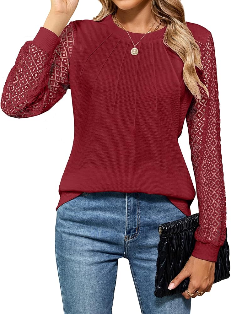 • الميزات: بلوزات خريفية بأكمام طويلة للسيدات، رقبة دائرية كلاسيكية، مطويات أمامية، تضيف تصميمًا فريدًا ورقيقًا إلى قمم الخريف. تضيف الأكمام الطويلة من الدانتيل لمسة أنثوية وتوفر مظهرًا جذابًا وأنيقًا.