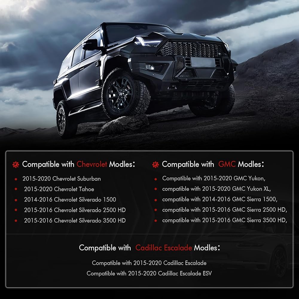 【التوافق مع: لسيارة 2015-2020 Chevy Suburban، Tahoe، GMC Yukon/Yukon XL، Cadillac Escalade/Escalade ESV؛ لسيارة تشيفي سيلفرادو 2014-2016 1500، جي إم سي سييرا 1500؛ ل2015-2016 تشيفي سيلفرادو 2500 HD/3500 HD، جي إم سي سييرا 2500 HD/3500 HD