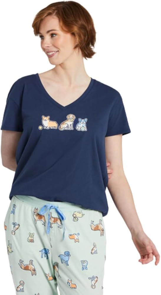 You're getting sleepy (very sleepy) in this 100% cotton jersey sleep tee. Snuggle up soft with v-neck styling for added comfort, this one will have you reaching for the snooze button.