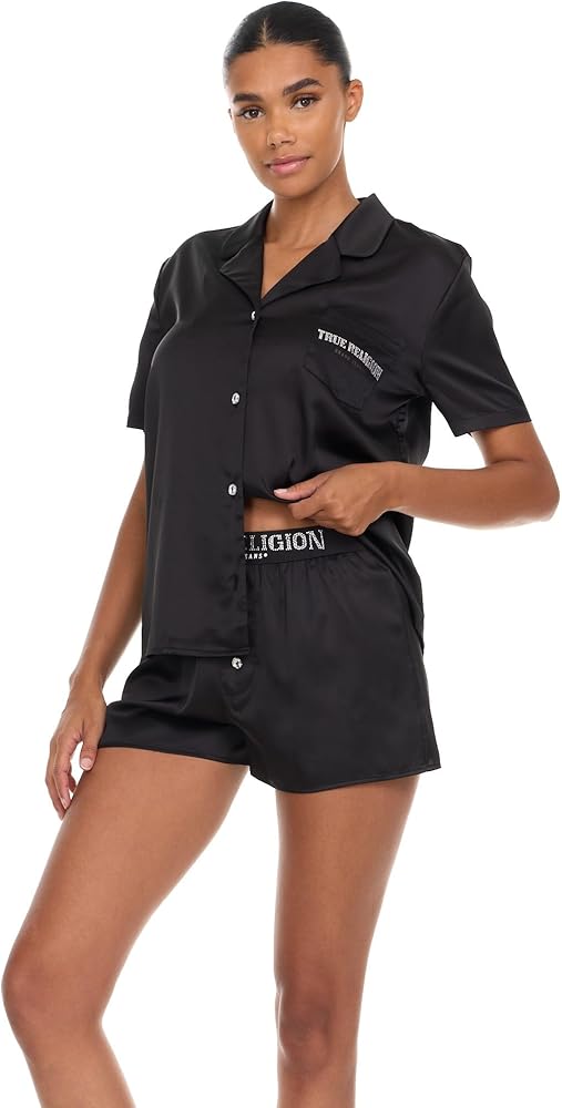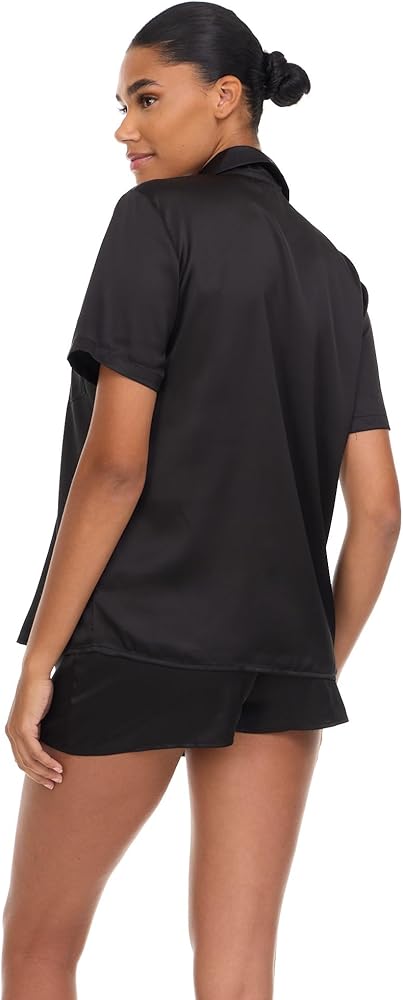 تصميم أنيق: تتميز هذه البيجامة النسائية بجزء علوي أنيق بأكمام قصيرة وأزرار سفلية مع ياقة كلاسيكية وسروال قصير متناسق، وتوفر الأناقة والراحة. يضيف التصميم الخالد لهذه البيجامات المصنوعة من الساتان لمسة من الرقي إلى مجموعة ملابس الاسترخاء الخاصة بك.